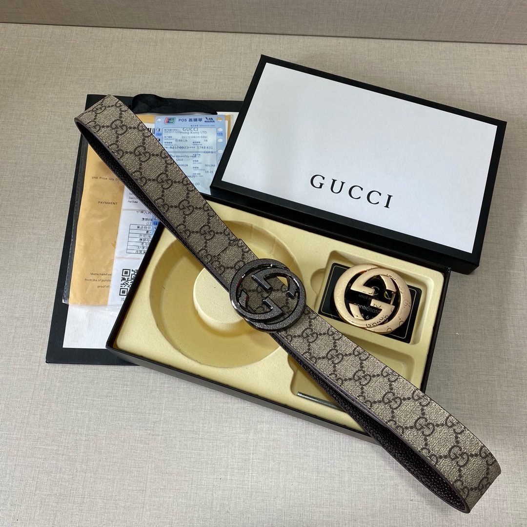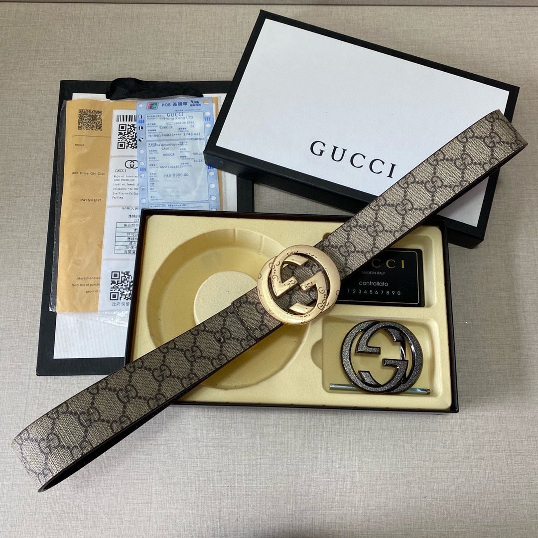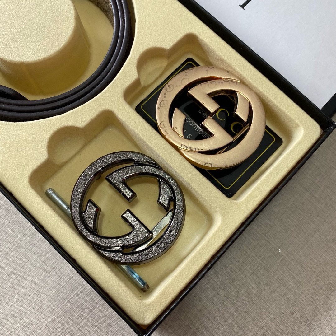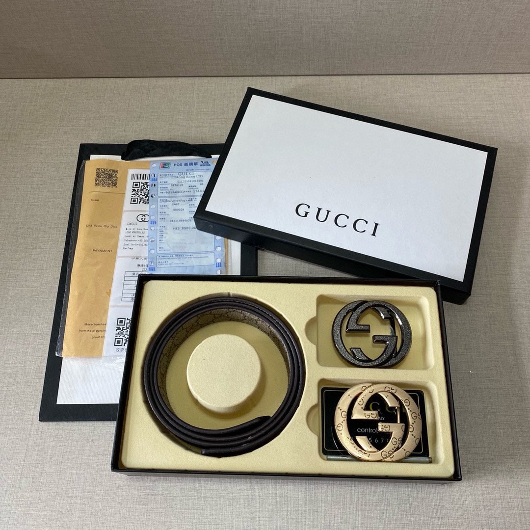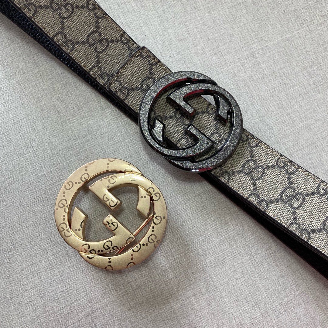 Gucci’s shining double-buckle belt perfectly combines luxury and fashion. The belt buckle adopts a unique double-buckle design, with two kinds of buckles, gold and black, which highlights the wearer’s extraordinary taste. The belt is made of high-quality leather, which is soft and comfortable to the touch, and is also wear-resistant and durable, ensuring that it can maintain its new texture after long-term use. The whole belt design is simple yet elegant, suitable for both formal occasions and casual wear.