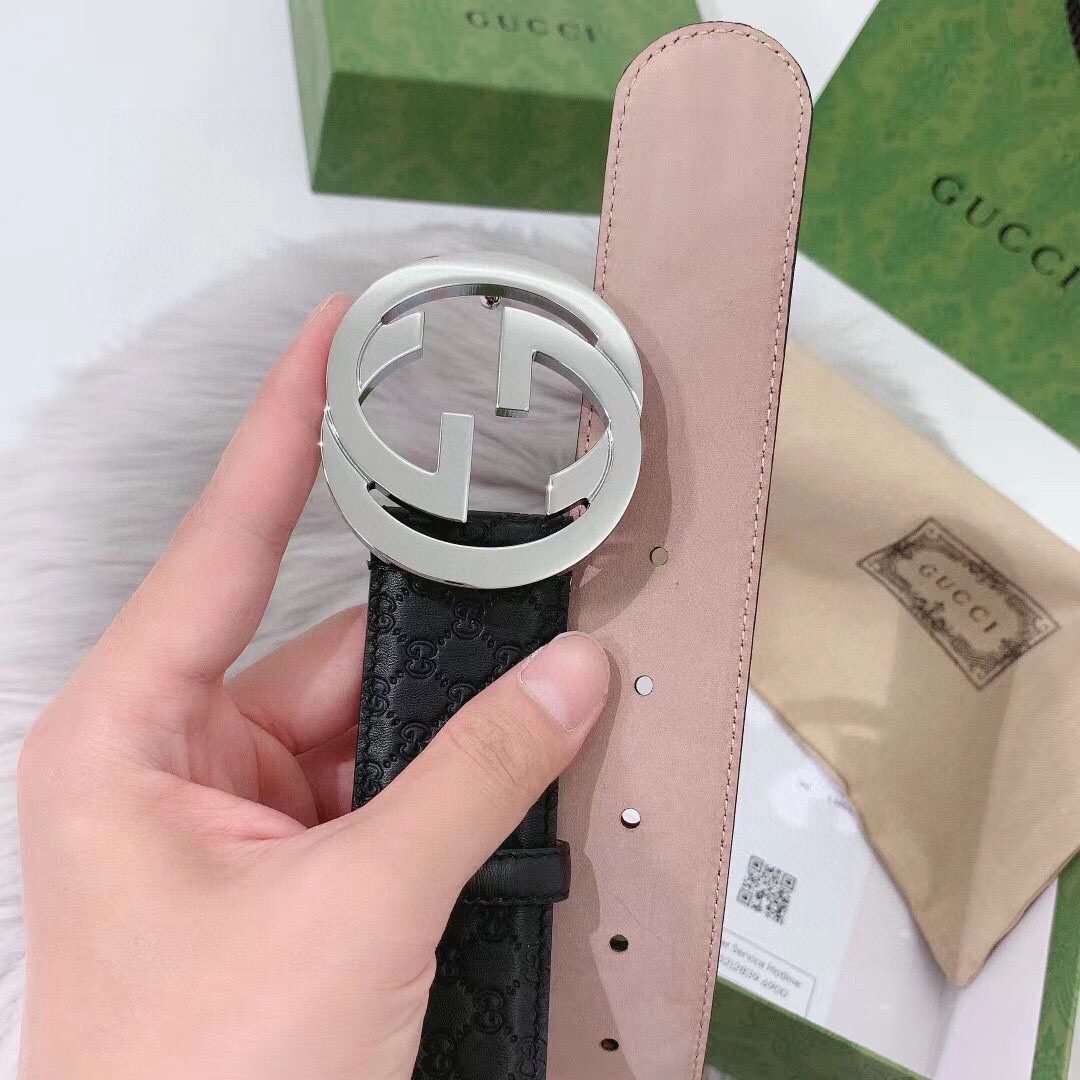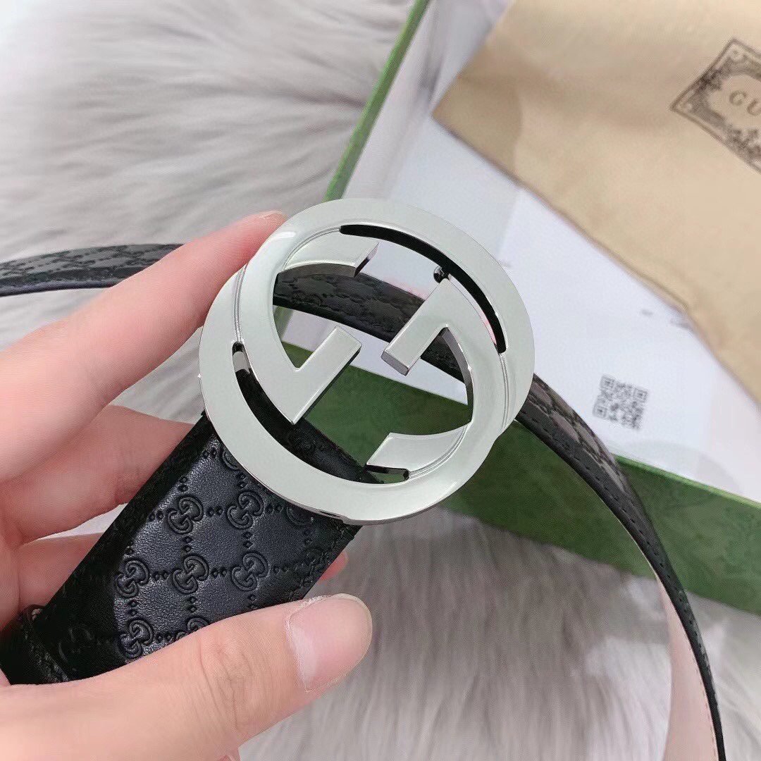 This GUCCI classic G pattern black belt has become the darling of the fashion world with its unique charm. Selected high-quality black leather, delicate touch, excellent texture, showing a low-key and luxurious taste. The belt buckle adopts a unique silver metal design, with a delicate GUCCI brand logo, highlighting the high-end and noble of the brand. Every detail has been carefully polished, showing unparalleled craftsmanship and quality.