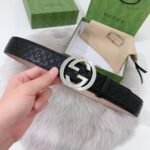 Whether in the office, meeting room, bar or restaurant, this GUCCI classic G pattern black belt can add elegance and nobility to your overall look. It can not only enhance your personal image, but also make you stand out from the crowd and become the focus of everyone’s attention.