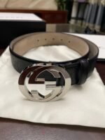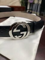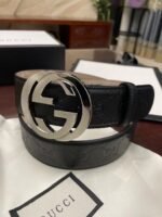 Gucci silver double G black textured belt has become a leader in the fashion industry with its unique double G buckle design and excellent quality. Selected high-quality leather material, soft to the touch and elastic, ensuring that it can maintain its original luster and texture after long-term use. The double G buckle is made with exquisite craftsmanship and has a shining luster, highlighting the nobility and luxury of the brand.
