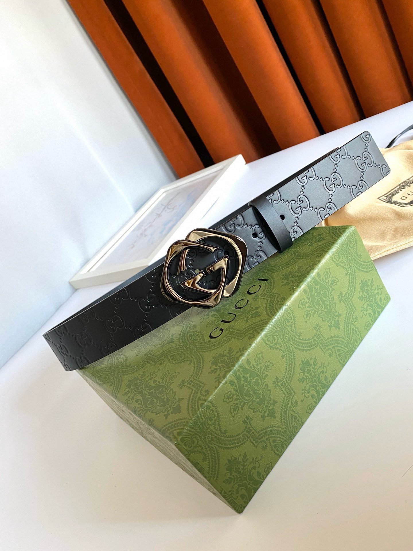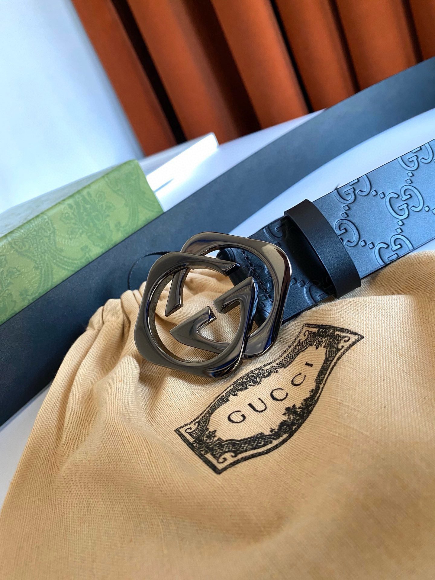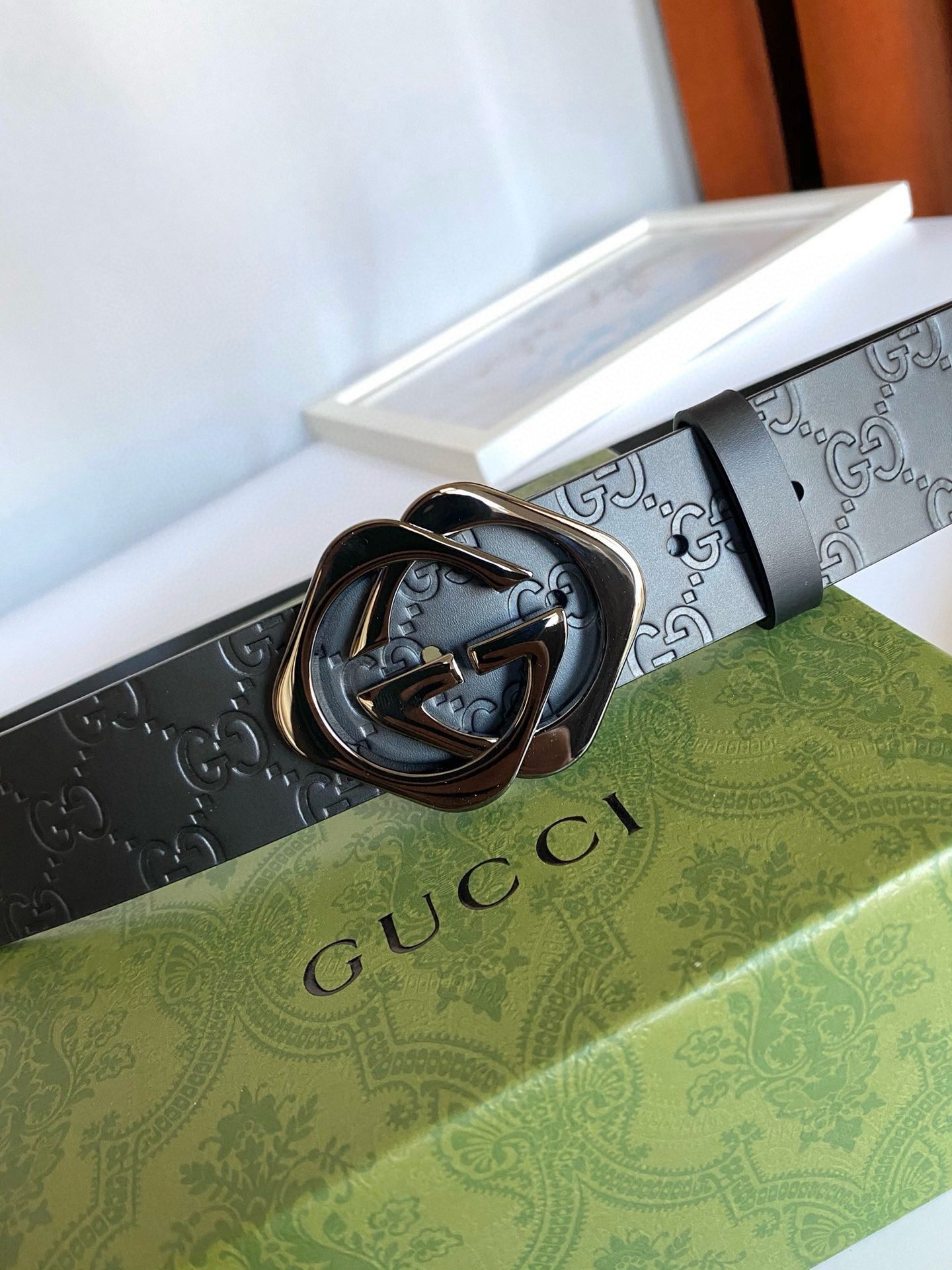 Gucci black double G buckle black textured belt, with its unique G-shaped buckle design, highlights the brand’s nobility and elegance. The belt is made of high-quality black leather, which is soft and delicate to the touch while being wear-resistant and durable. The G-shaped buckle is made of fine steel, and its surface has been polished to give it a bright luster, showing its luxurious quality. In addition, the length of the belt can be flexibly adjusted according to personal waist circumference to ensure wearing comfort.