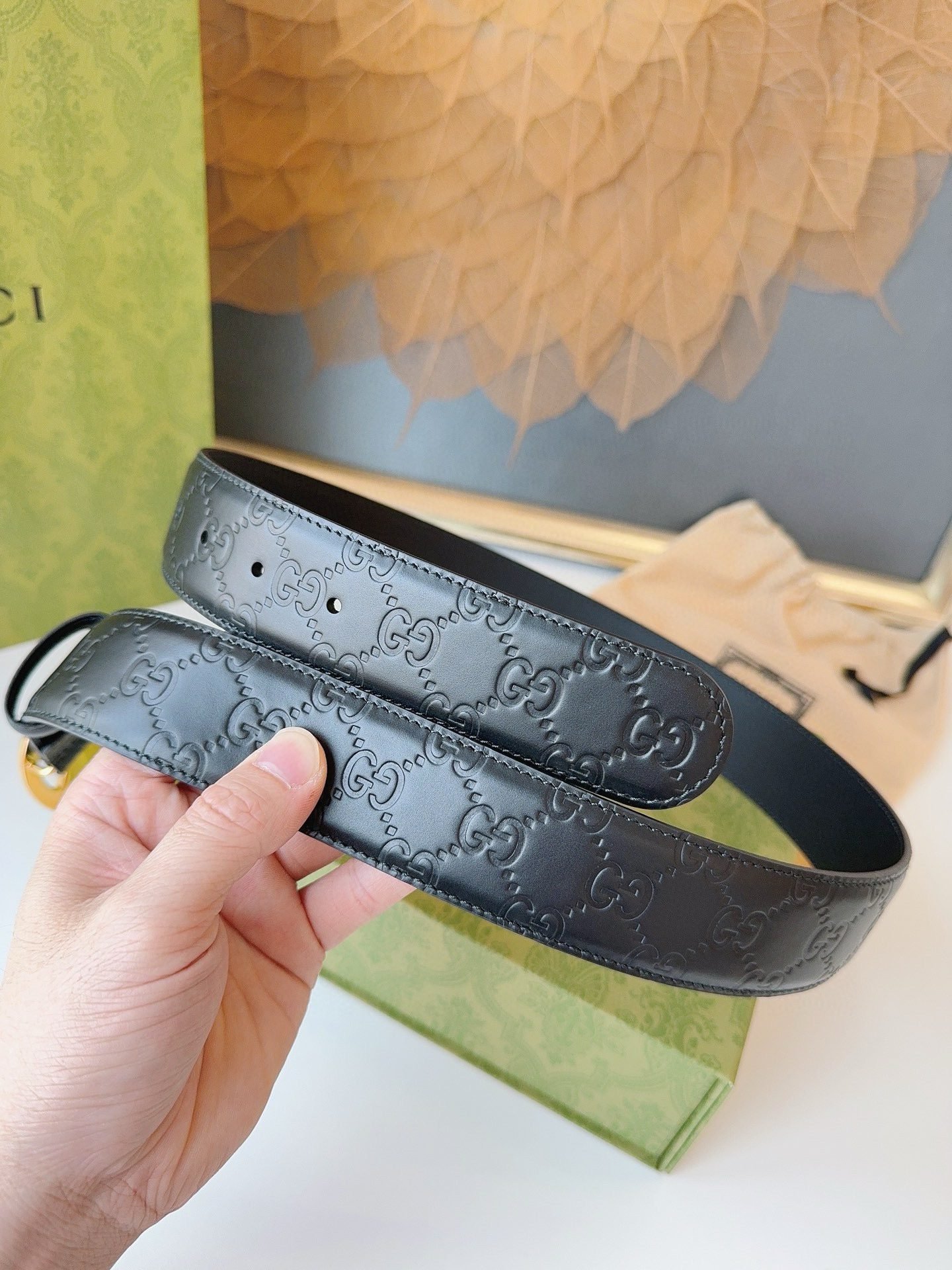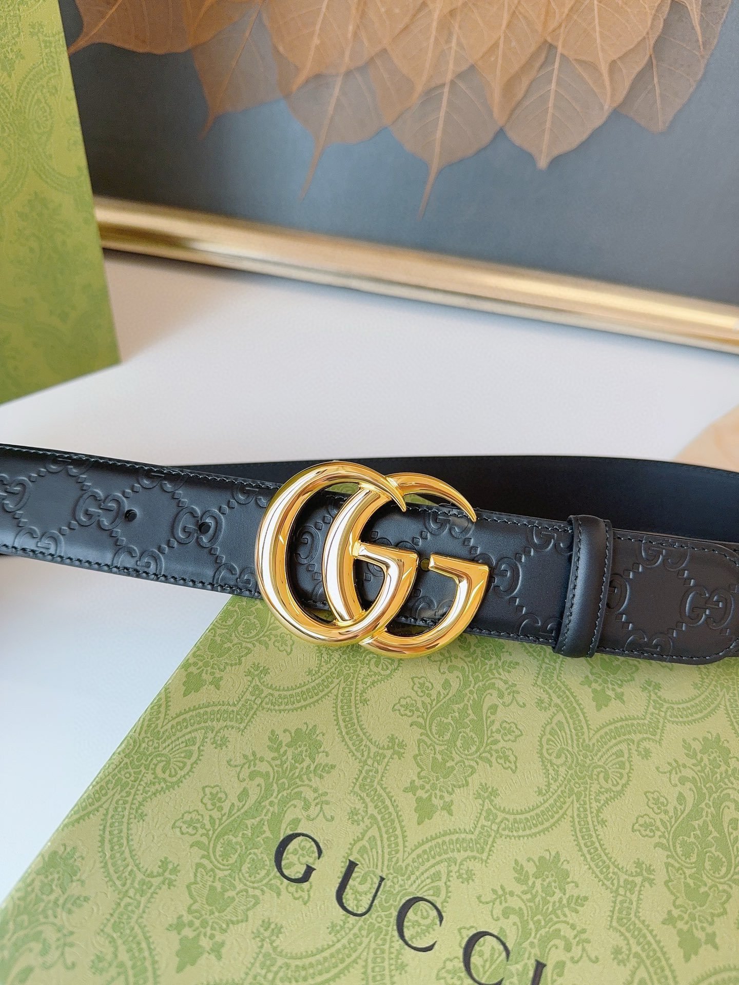 This GUCCI silver double G buckle black textured belt demonstrates the ultimate in fashion and luxury with its timeless design and impeccable quality. The selected black leather is soft and delicate to the touch, showing unparalleled texture and luster. The silver double G logo on the belt is inlaid with exquisite craftsmanship and shines with a unique light, highlighting the unique charm and noble temperament of the GUCCI brand.