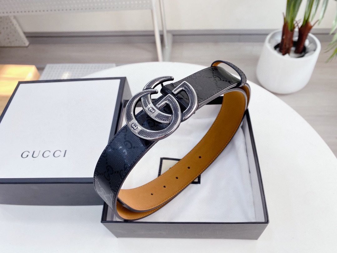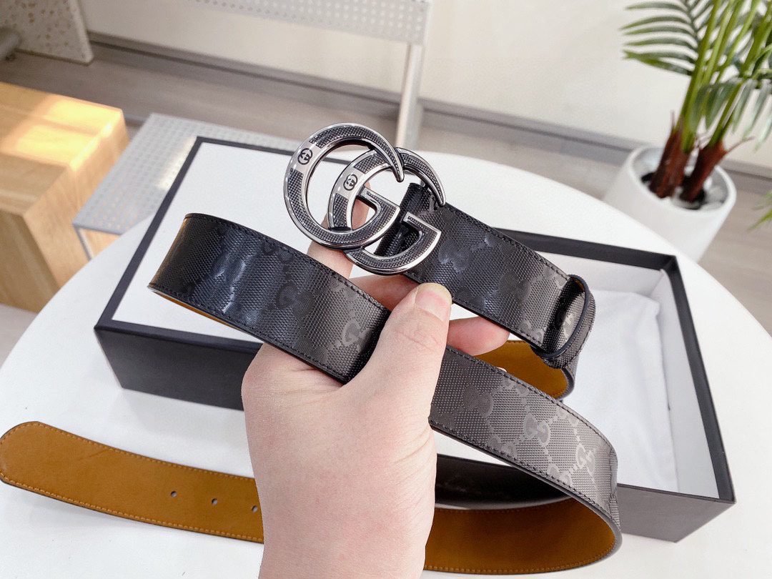 Home Belt GUCCI Belt Gucci silver double G buckle logo fashion belt soft touch elastic clear texture