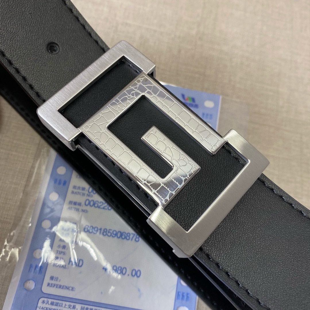 Gucci’s classic, this black belt with silver G buckle highlights the wearer’s extraordinary taste with its unique design and excellent quality. The belt is made of high-quality black leather, which is soft to the touch and elastic, providing the wearer with the ultimate comfort experience. The silver G buckle has an exquisite design and bright luster, which contrasts sharply with the black belt, highlighting the brand’s unique charm.