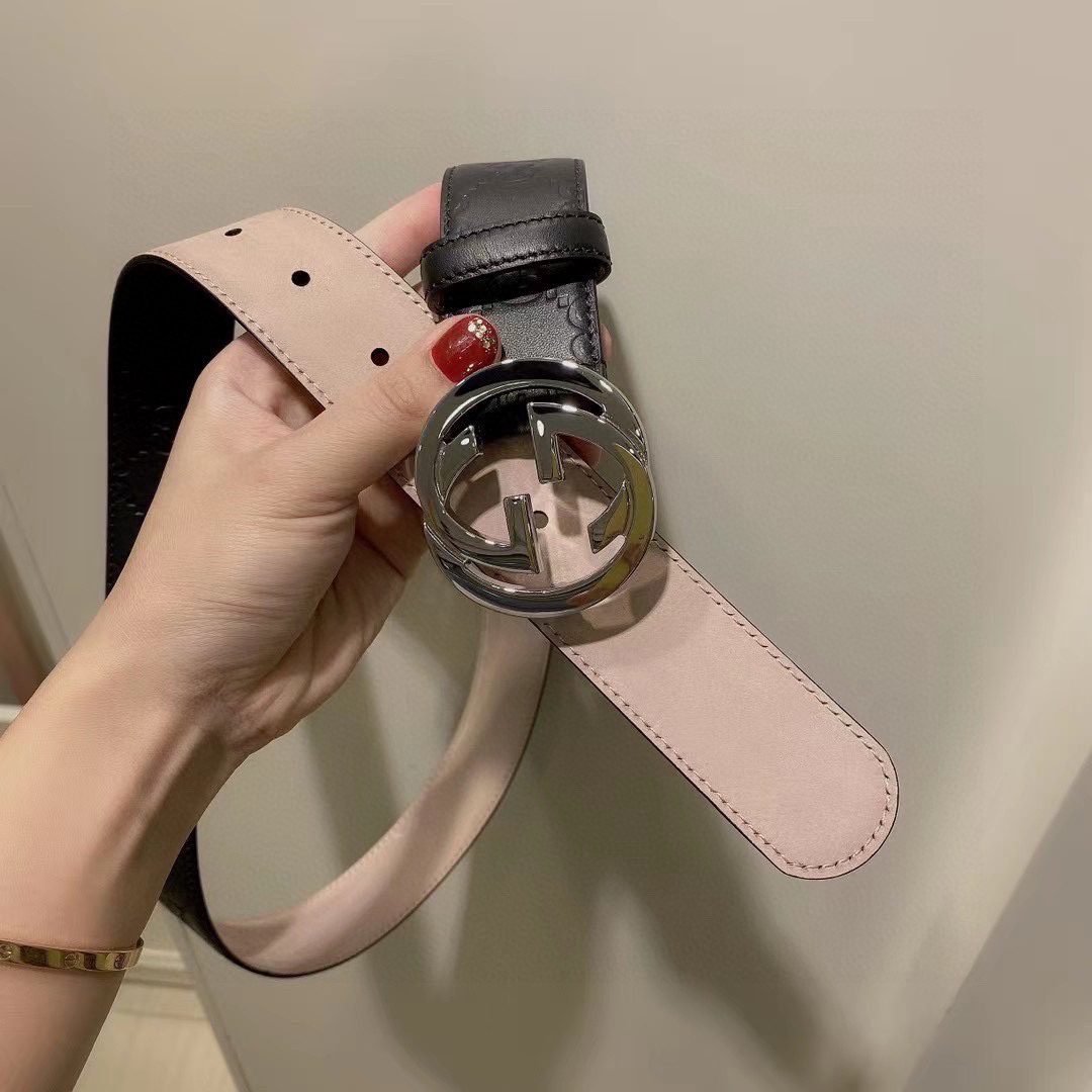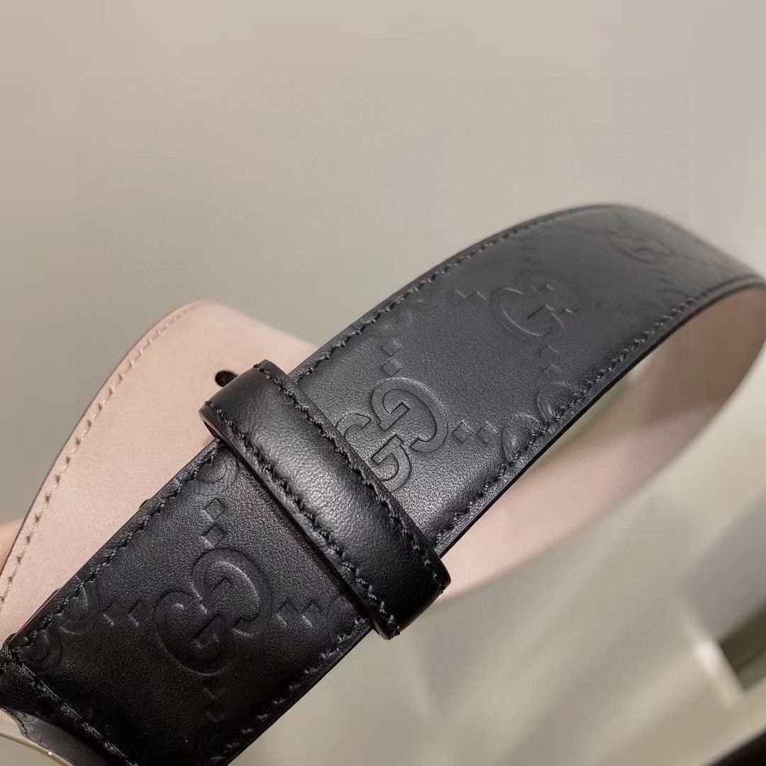 This Gucci silver G buckle black textured fashion belt perfectly combines the brand’s classic elements with modern aesthetics. The black belt is made of high-grade leather, which is soft and elastic to the touch, with a natural luster, showing a low-key sense of luxury. The silver G buckle is the brand’s iconic design, showing excellent quality with exquisite craftsmanship and delicate lines, making the wearer easily become the focus.