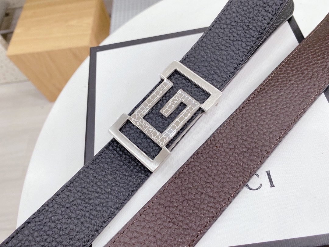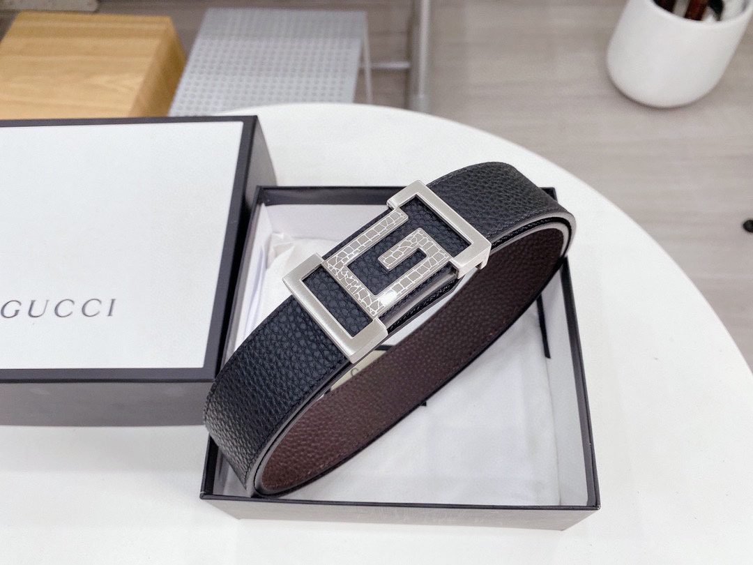 GUCCI’s black and brown two-tone fashionable belt highlights the brand’s excellent taste with its unique design. The belt adopts a classic two-tone color scheme, and the interweaving of black and brown creates a low-key and luxurious visual effect. The buckle part uses a silver capital letter “G”, which is not only highly recognizable, but also a symbol of brand identity. The entire belt is made of high-quality materials, soft and comfortable to the touch, strong durability, while maintaining excellent gloss and texture.