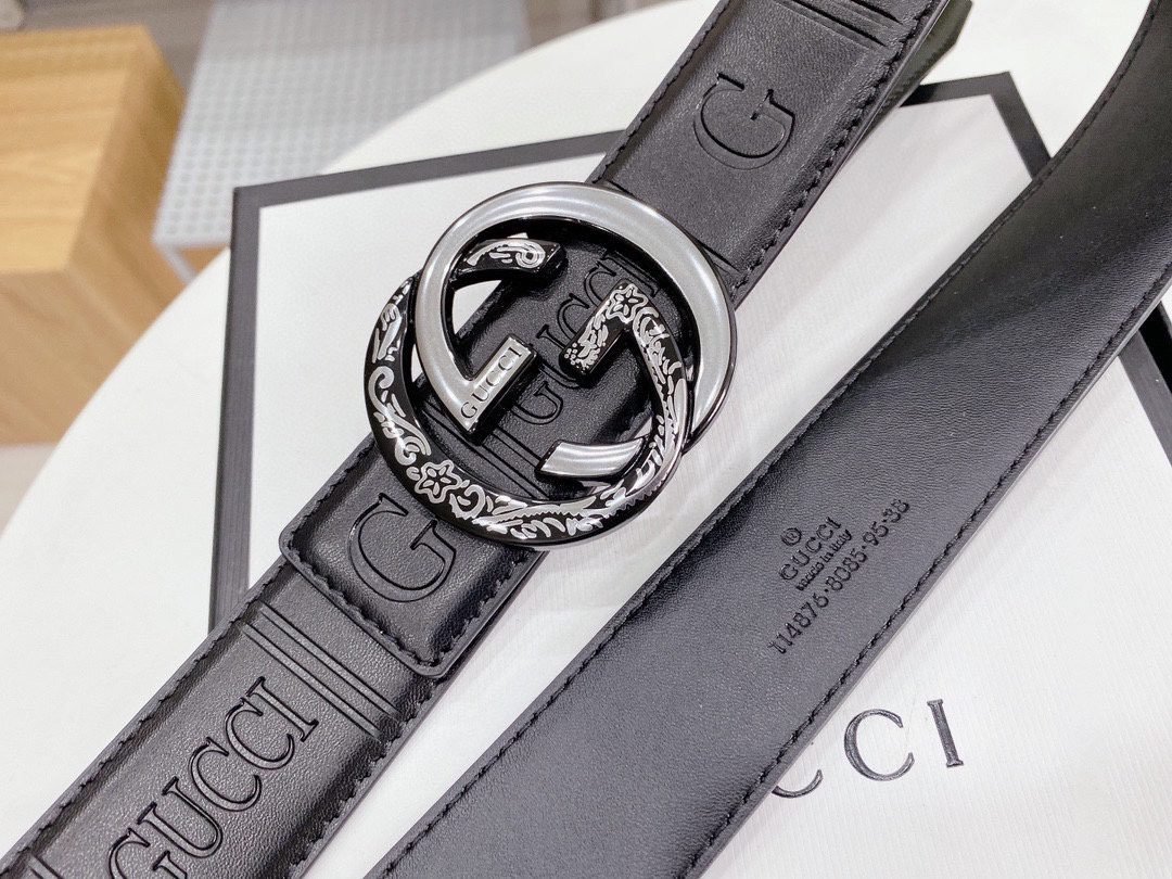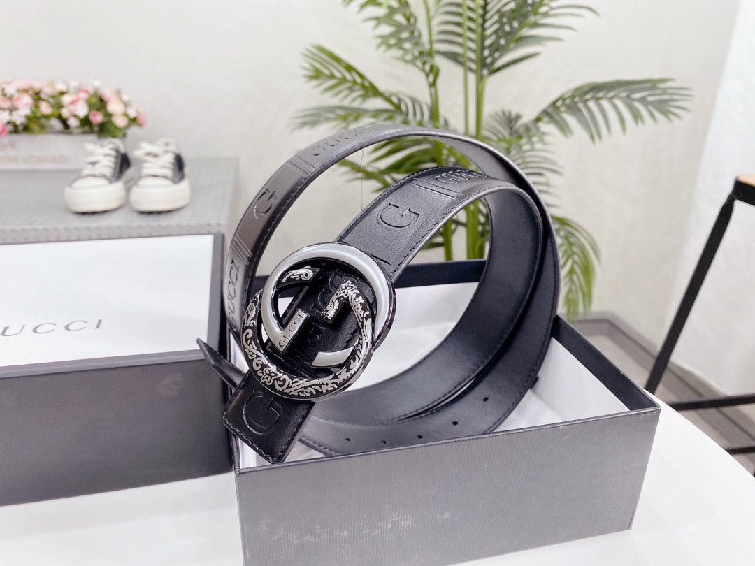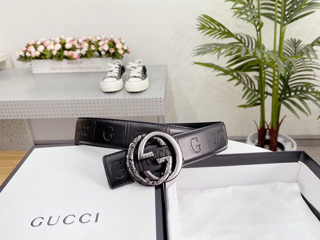 Home Belt GUCCI Belt Gucci silver snake buckle black textured belt simple atmosphere unique texture soft and comfortable touch
