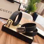 This Gucci square buckle black belt is full of extraordinary charm with its exquisite craftsmanship and luxurious materials. It is made of selected high-quality leather materials, which are soft and delicate to the touch, durable, and have an elegant luster. The unique metal double G buckle design cleverly combines Gucci’s classic elements with modern fashion, highlighting the wearer’s personality, taste and fashion attitude.