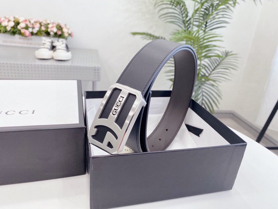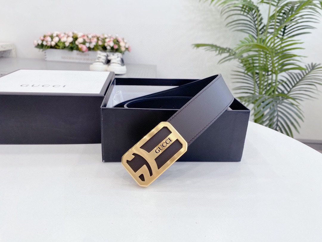 Home Belt GUCCI Belt Gucci square buckle black belt, simple and elegant, low-key luxury