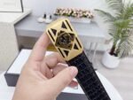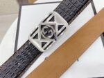 This Gucci square buckle black crocodile pattern belt highlights the wearer’s noble temperament with its excellent quality and unique design. It is made of top-grade leather material. The leather is fine, flexible and silky to the touch, giving you an unparalleled comfortable experience. The square buckle is made with precision craftsmanship and is inlaid with the brand logo, highlighting the brand’s charm.