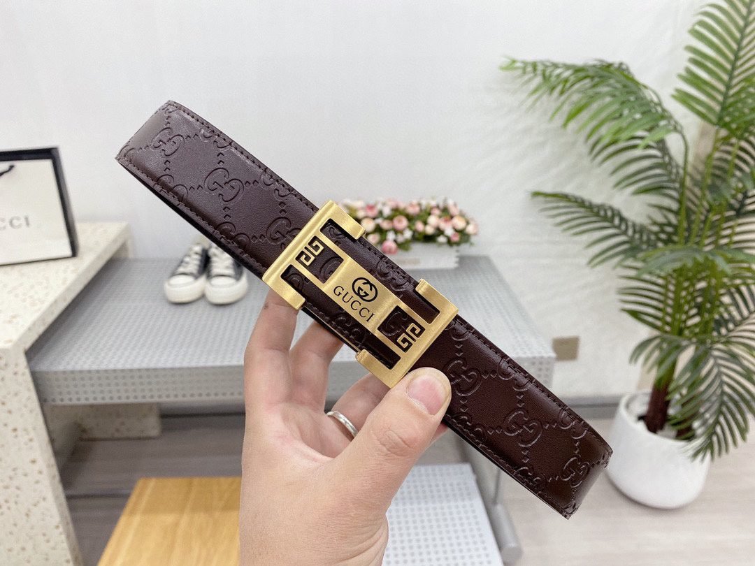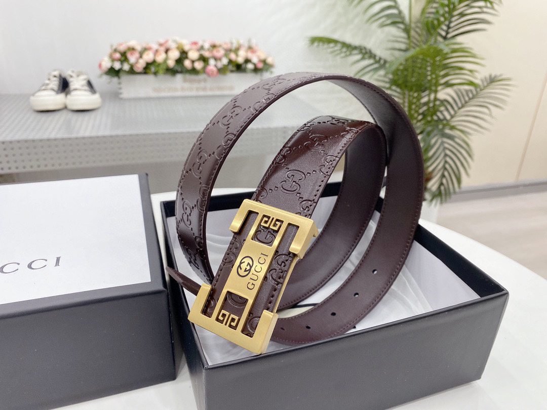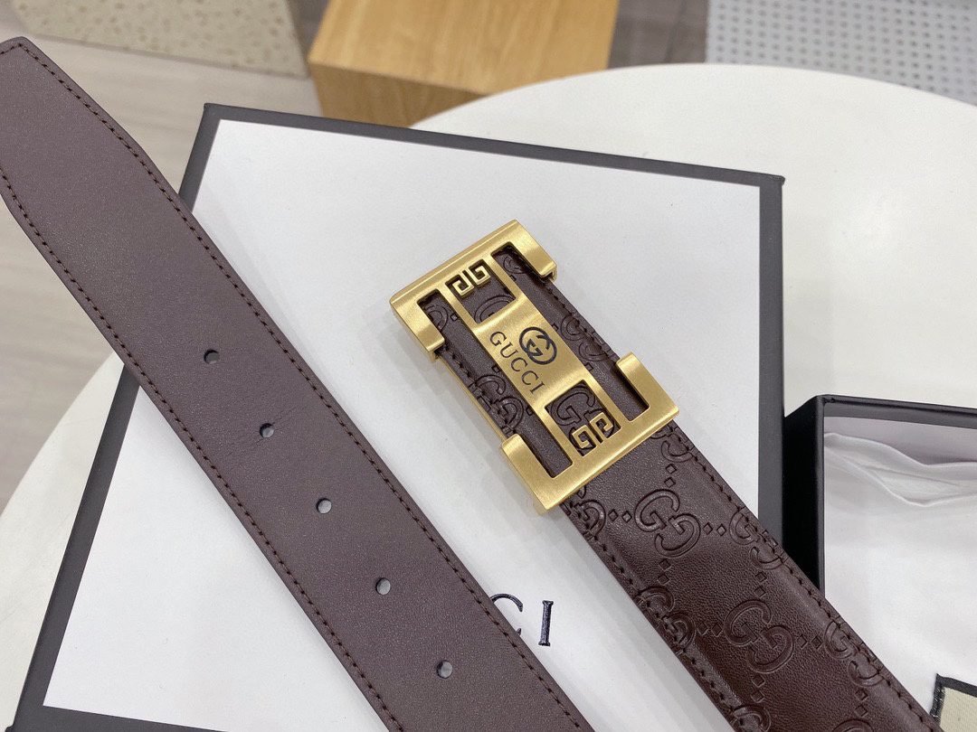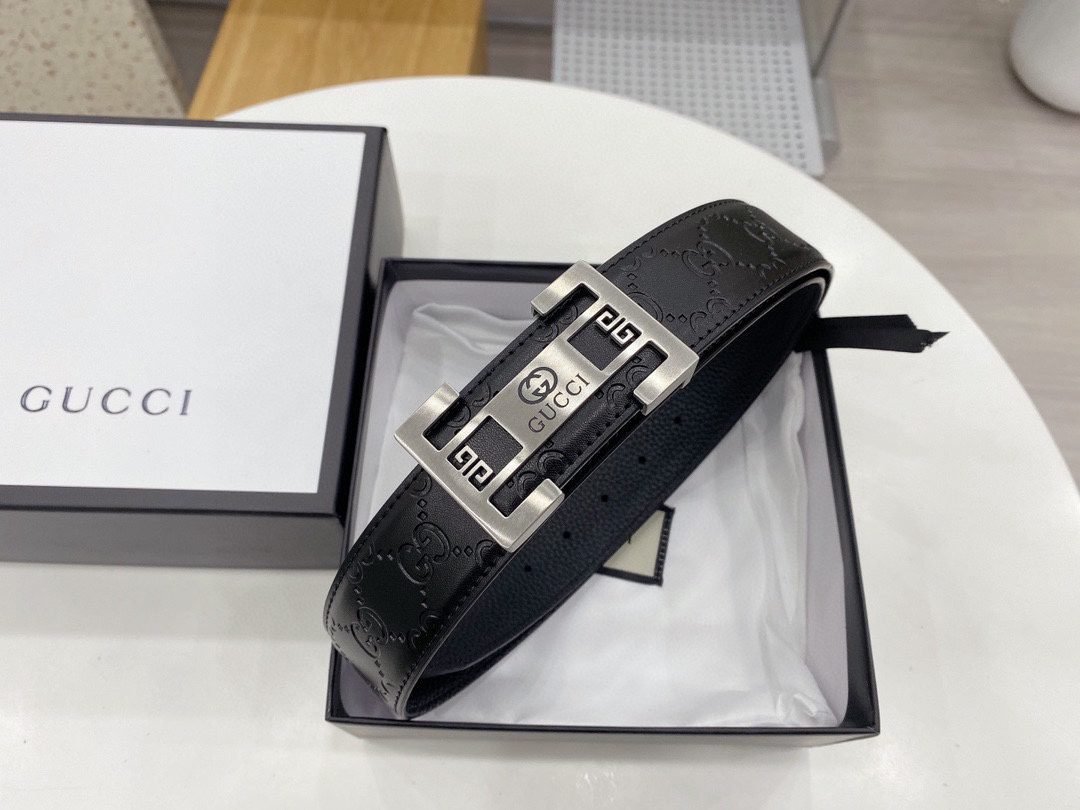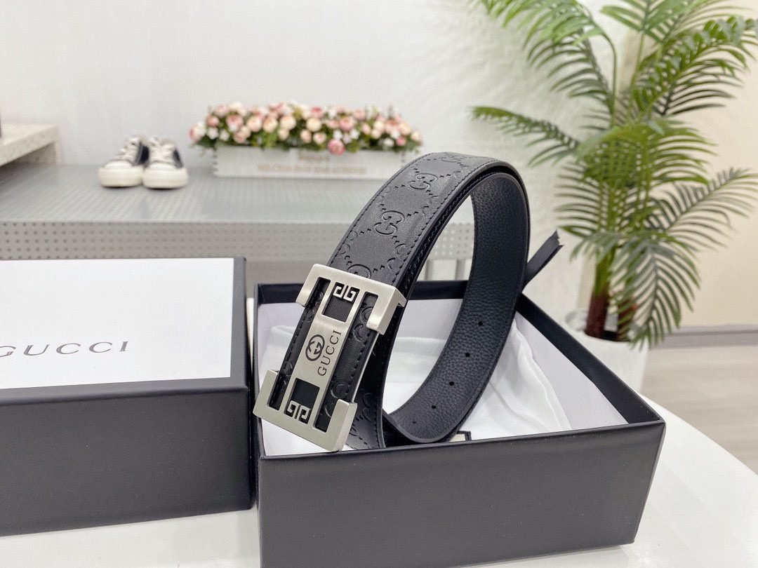 Gucci square buckle black textured belt, metal G buckle belt is made of high-quality leather, soft to the touch and elastic, ensuring comfort for long-term use, showing unique fashion charm, the belt buckle is made with precision technology to ensure a secure fit Solidity and stability.