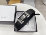 Gucci square buckle black textured belt, metal G buckle belt is made of high-quality leather, soft to the touch and elastic, ensuring comfort for long-term use, showing unique fashion charm, the belt buckle is made with precision technology to ensure a secure fit Solidity and stability.