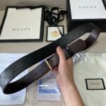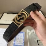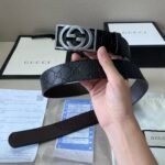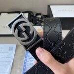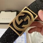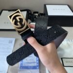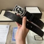 Gucci square buckle black textured belt, with its unique design and excellent quality, demonstrates the brand’s nobility and luxury. The belt is made of top-grade leather material, which has a delicate feel, tough texture and durability. The metal double G logo is made with exquisite craftsmanship and shines brightly, highlighting the wearer’s extraordinary taste and noble status.