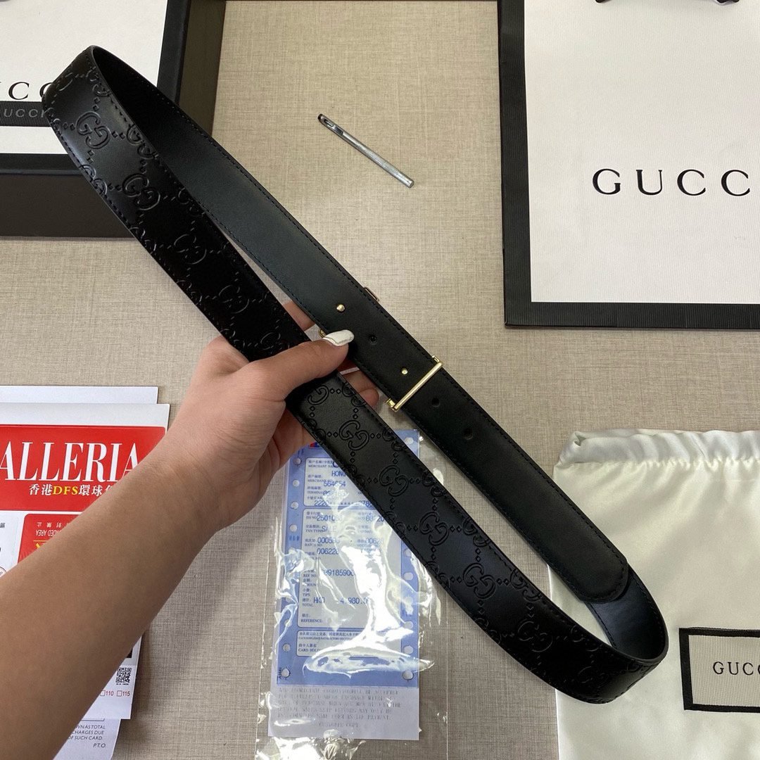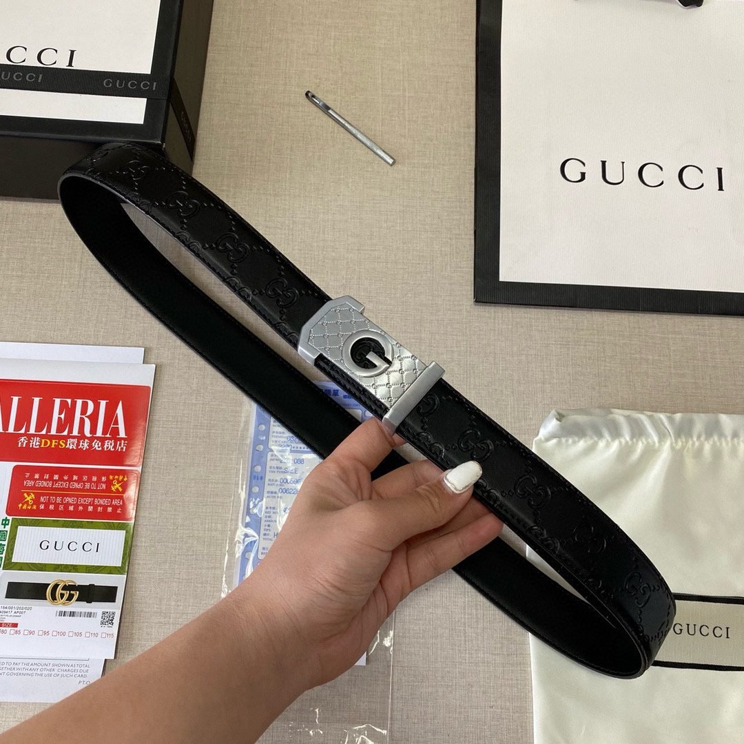 Gucci square buckle black textured belt, with its unique design and excellent quality, highlights unparalleled fashion charm. The belt is made of high-quality black leather, which is soft and delicate to the touch, wear-resistant and durable, and can stand the test of time. The buckle head is made of metal material, with a bright surface, showing a noble and elegant temperament.