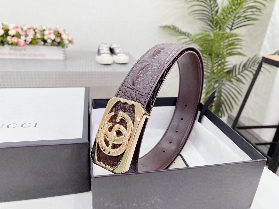 The Gucci square double G buckle crocodile pattern belt shows an unparalleled sense of luxury with its extraordinary material and exquisite craftsmanship. The top-quality leather is selected as the raw material, and after fine polishing and processing, it presents a delicate luster and flexible texture. It is simple yet elegant, highlighting the classics and fashion of the Gucci brand.
