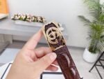 The Gucci square double G buckle crocodile pattern belt shows an unparalleled sense of luxury with its extraordinary material and exquisite craftsmanship. The top-quality leather is selected as the raw material, and after fine polishing and processing, it presents a delicate luster and flexible texture. It is simple yet elegant, highlighting the classics and fashion of the Gucci brand.