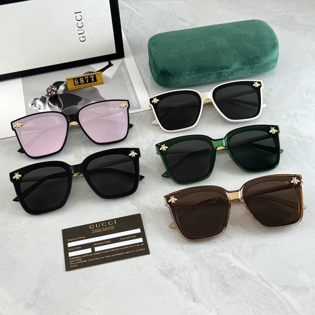 Elevate your accessory game with these Gucci square sunglasses featuring adorable bee accents. Available in a range of charming color combinations—pink lenses with black frames, black lenses with white frames, black lenses with green frames, black lenses with black frames, and brown lenses with brown frames—there’s a pair to match every mood and outfit. Crafted with Gucci’s signature attention to detail, these sunglasses not only offer excellent sun protection but also add a touch of whimsy and luxury to your look. Whether you’re strolling through the city or heading to the beach, let these sunglasses be your stylish companion.