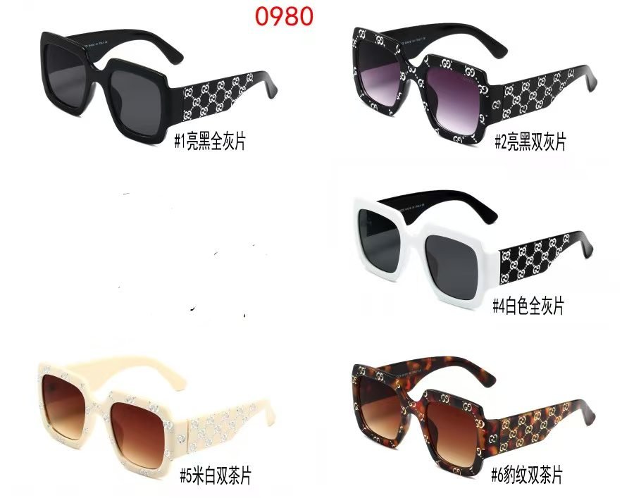 Elevate your style with this exquisite Gucci sunglasses collection. Boasting 5 unique designs, each pair seamlessly blends Gucci’s iconic luxury with contemporary trends. Whether you favor the sleekness of glossy black, the freshness of white, the elegance of off – white with sparkling details, or the bold charm of leopard print, there’s a perfect fit for every mood and occasion. Meticulously crafted with high – quality materials, these sunglasses not only provide excellent sun protection but also serve as a striking fashion statement. Step into the spotlight and let Gucci redefine your accessory game. (The red number “0980” at the top may indicate the price, which can be added as needed, such as “Priced at 0980 [currency unit], they are a worthy investment in both style and quality.”)