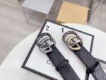 Gucci textured double G black textured belt has become a shining star in the fashion industry with its unique design and exquisite craftsmanship. The belt is made of top-quality leather, which feels soft and smooth and is durable. The iconic double G logo buckle is made of high-quality metal, highlighting the wearer’s dignity and taste.