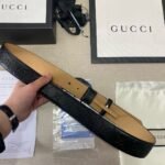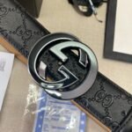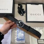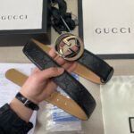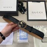 Gucci’s two-color buckle black textured belt interprets the brand’s unique fashion charm with its unparalleled sophistication and luxury. Selected top-grade black leather material, with fine and smooth surface, soft touch and excellent durability. The double G buckle is made of high-quality metal, with bright luster and noble temperament. The buckle design is simple yet grand, perfectly integrated with the belt, showing the brand’s consistent exquisite craftsmanship and excellent quality.