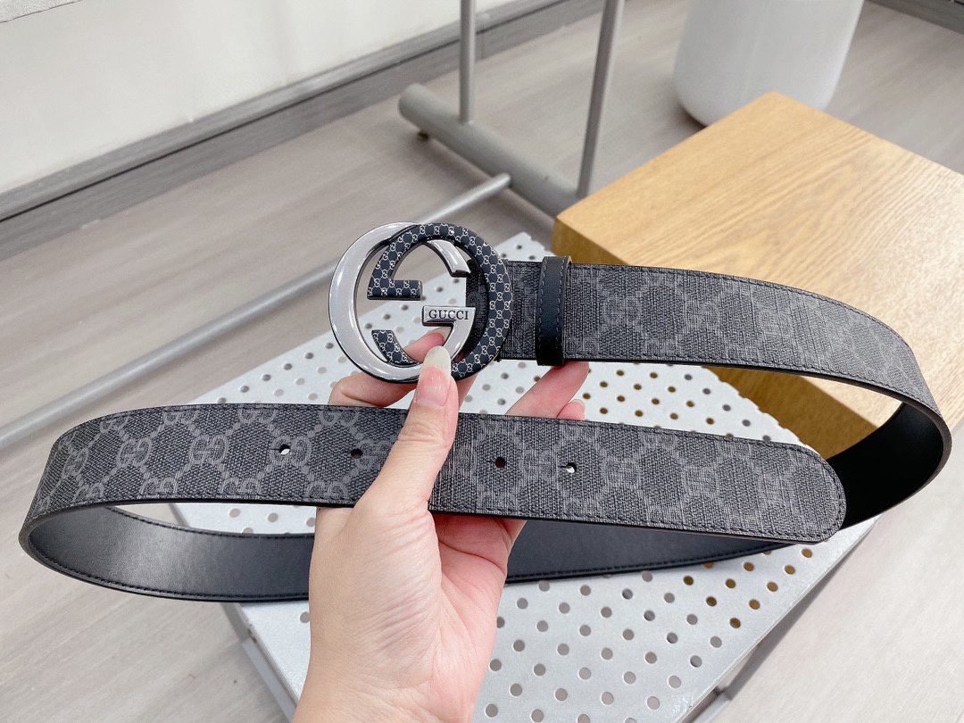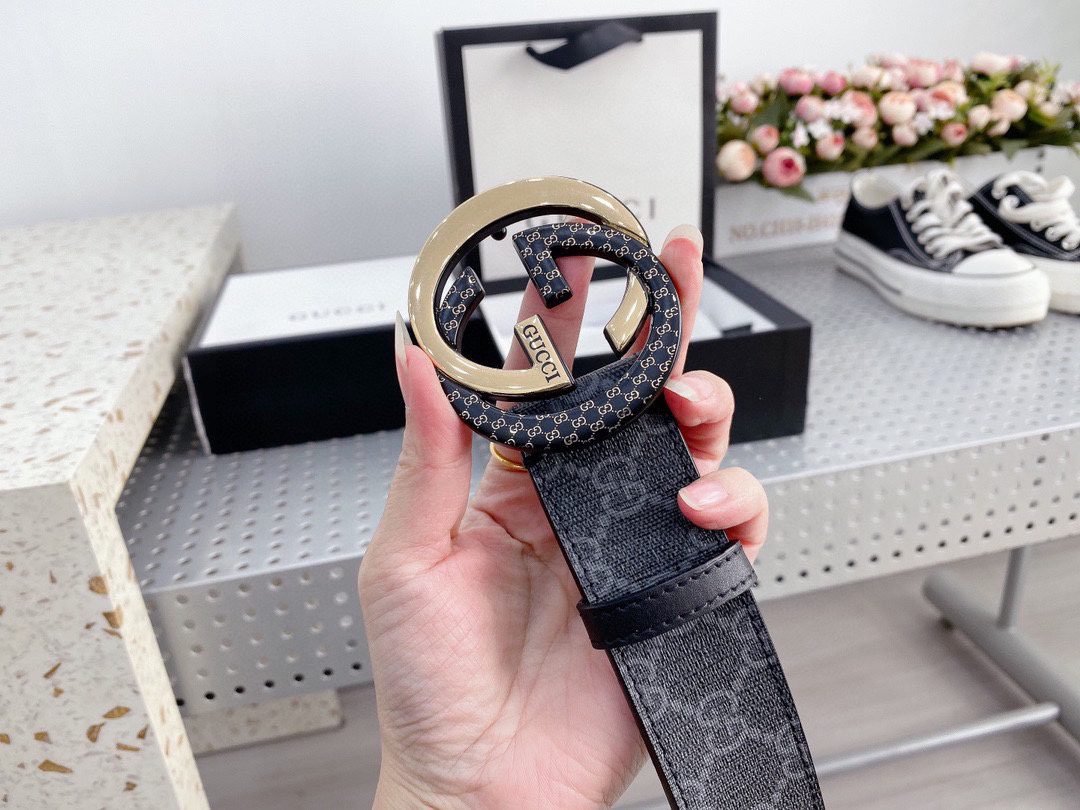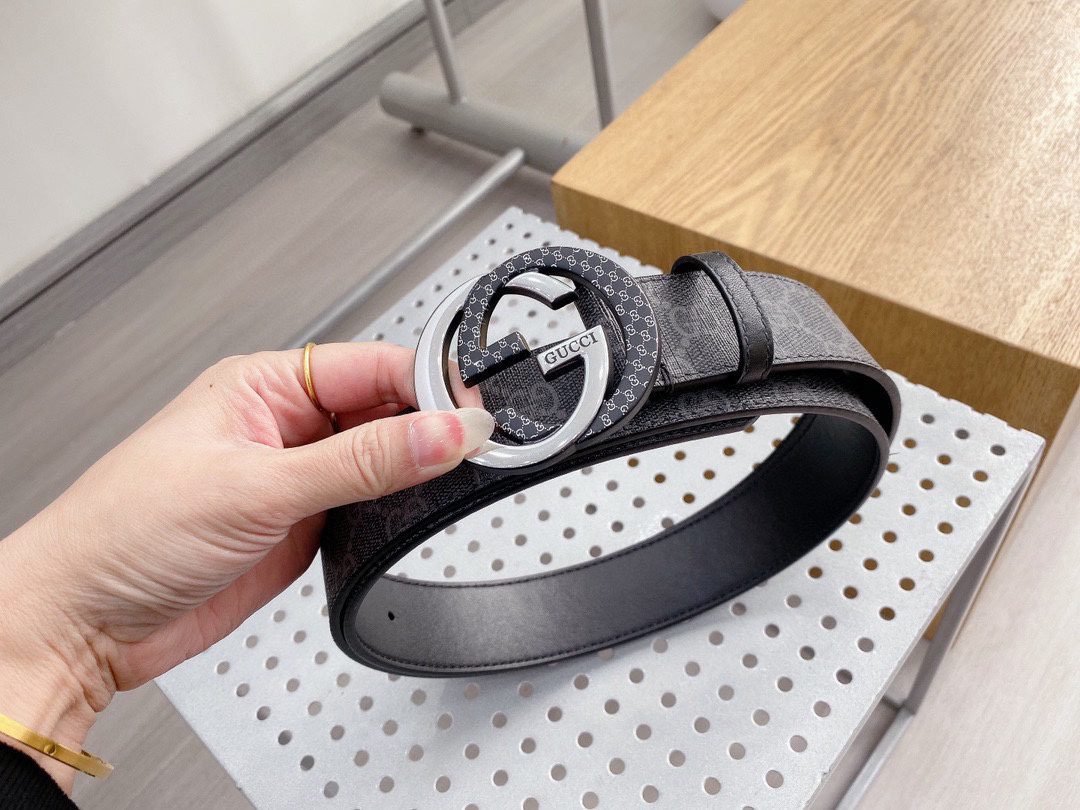 Gucci’s two-color buckle black textured belt highlights the brand’s unique charm with its unique design and excellent quality. Selected top-grade black leather, with soft texture, delicate touch and deep color, highlighting low-key luxury. Paired with the classic GG metal buckle, it is finely polished and shiny, highlighting its noble temperament.