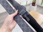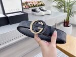 Gucci’s two-color buckle black textured belt highlights the brand’s unique charm with its unique design and excellent quality. Selected top-grade black leather, with soft texture, delicate touch and deep color, highlighting low-key luxury. Paired with the classic GG metal buckle, it is finely polished and shiny, highlighting its noble temperament.