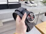 Gucci two-color buckle black textured belt, simple and elegant, noble and elegant