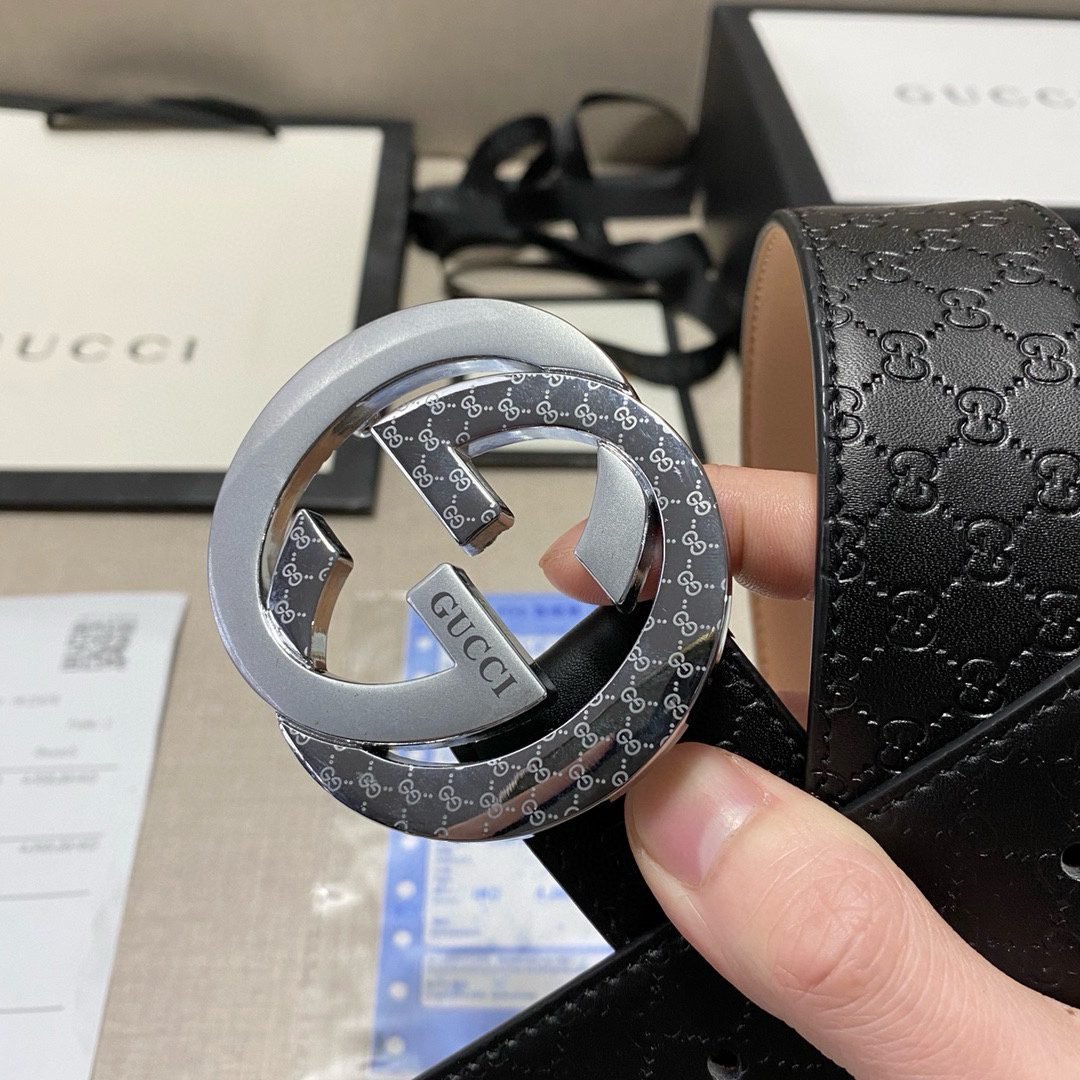 This Gucci two-color double G buckle black textured belt has become a classic in the fashion industry with its unique design and excellent quality. It is made of high-quality black leather material, and the surface has been finely polished, showing a charming luster and delicate touch. The belt buckle is inlaid with the iconic double G pattern, highlighting the brand’s nobility and elegance.
