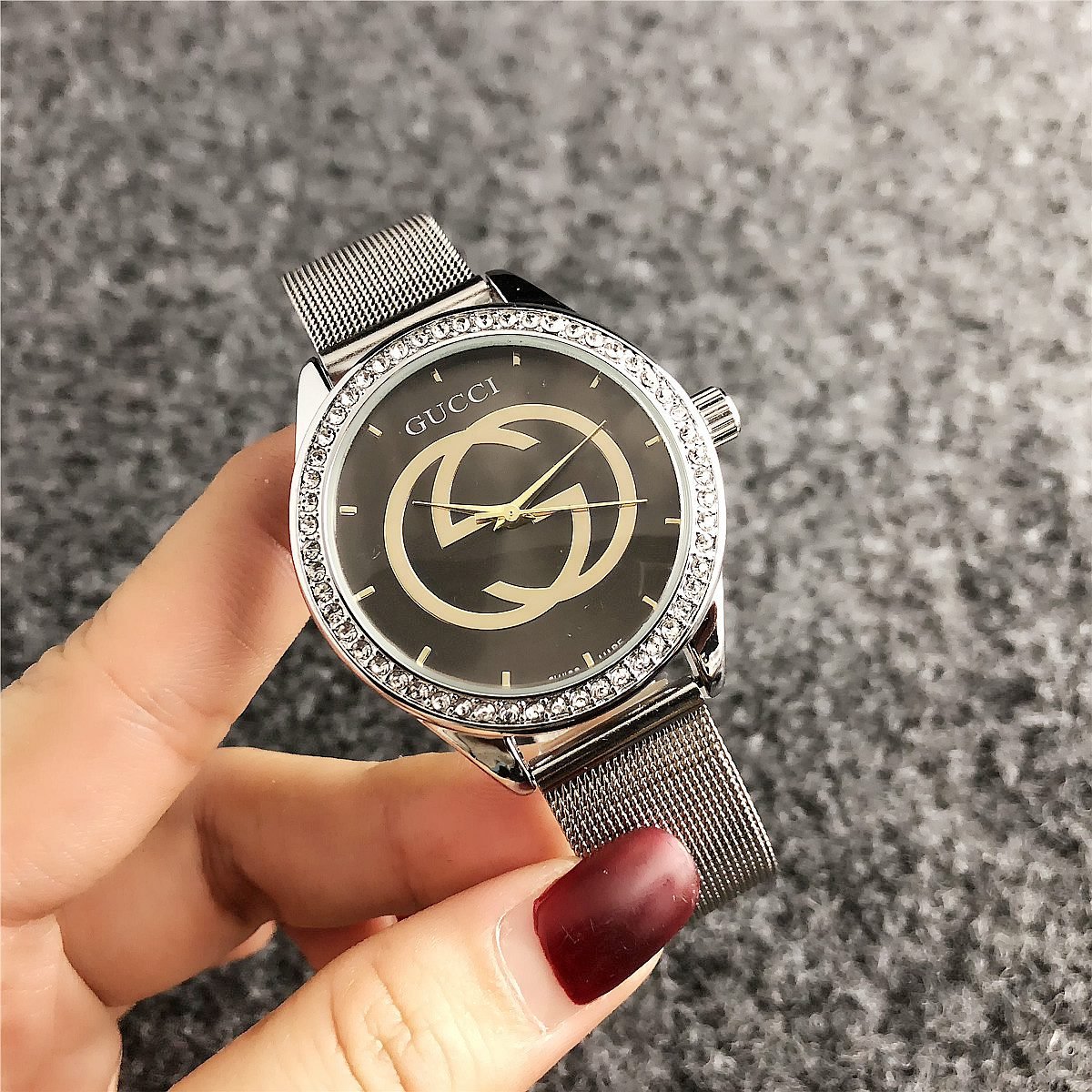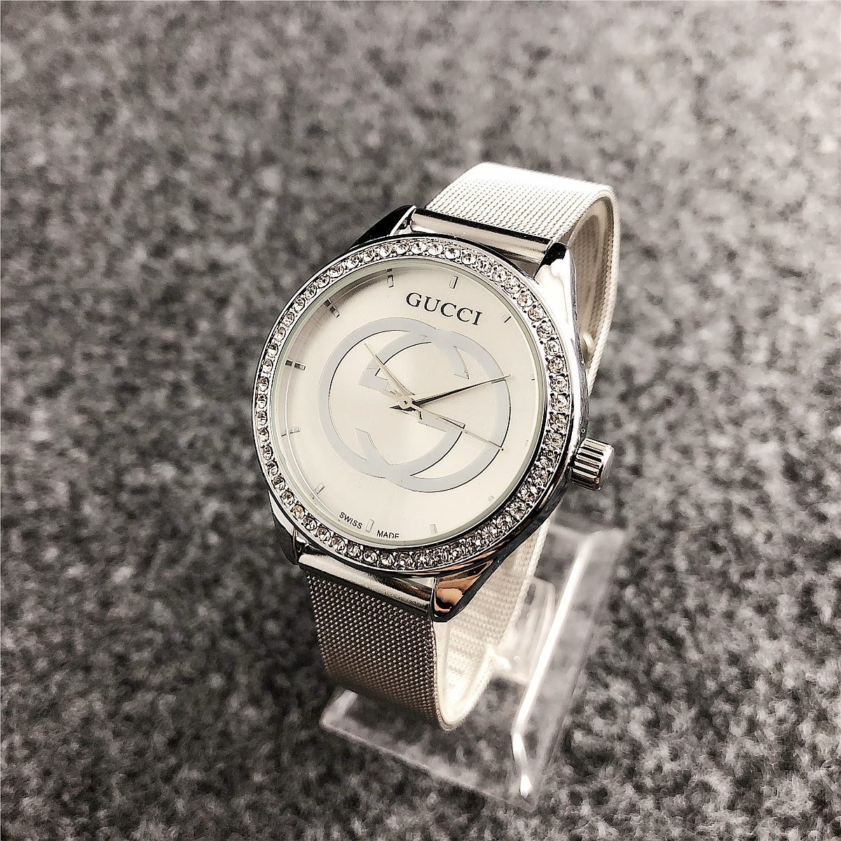 Be the first to review “Gucci watch with round diamond bezel dial and steel strip” Cancel reply