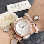 Be the first to review “Gucci watch with round diamond border dial and leather strap” Cancel reply