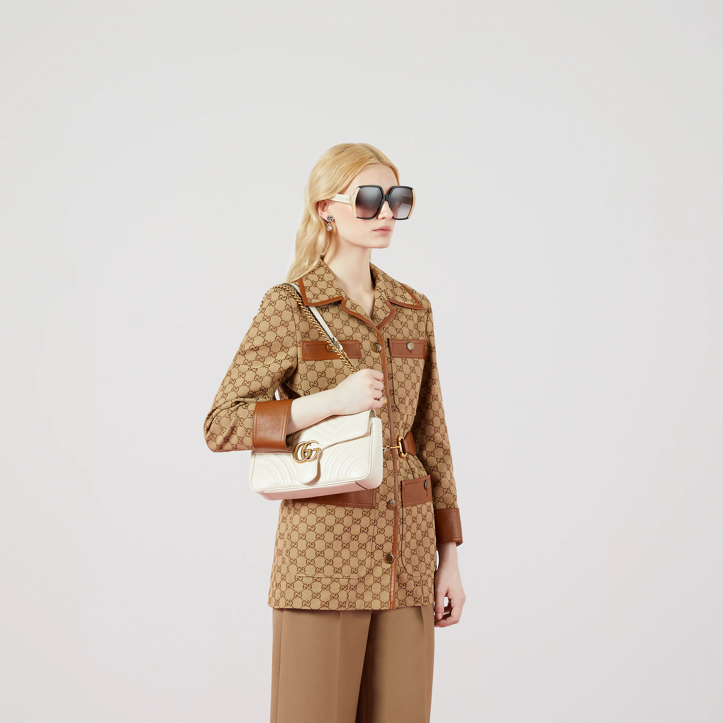- The small GG Marmont chain shoulder bag has a softly structured shape and an oversized flap closure with Double G hardware. The sliding chain strap can be worn multiple ways, changing between a shoulder and a top handle bag. Made in matelassé chevron leather with a heart on the back.