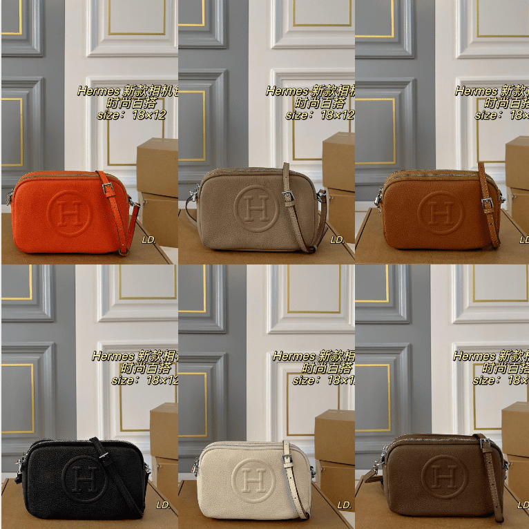 This Hermès mini camera bag collection features the brand’s iconic embossed H logo, crafted from luxurious leather and designed with a compact silhouette of 18×12cm. Embodying Hermès’ legacy of exceptional craftsmanship and versatile style, it comes with an adjustable crossbody strap for effortless styling. Available in a range of refined hues, this bag is perfect for those who appreciate iconic branding, premium materials, and understated elegance, making a polished statement suitable for daily outings or as a chic accessory.
