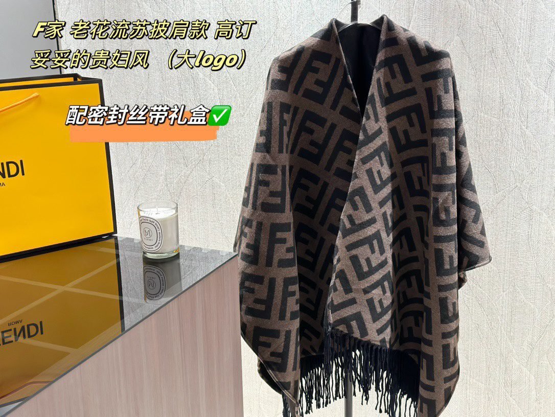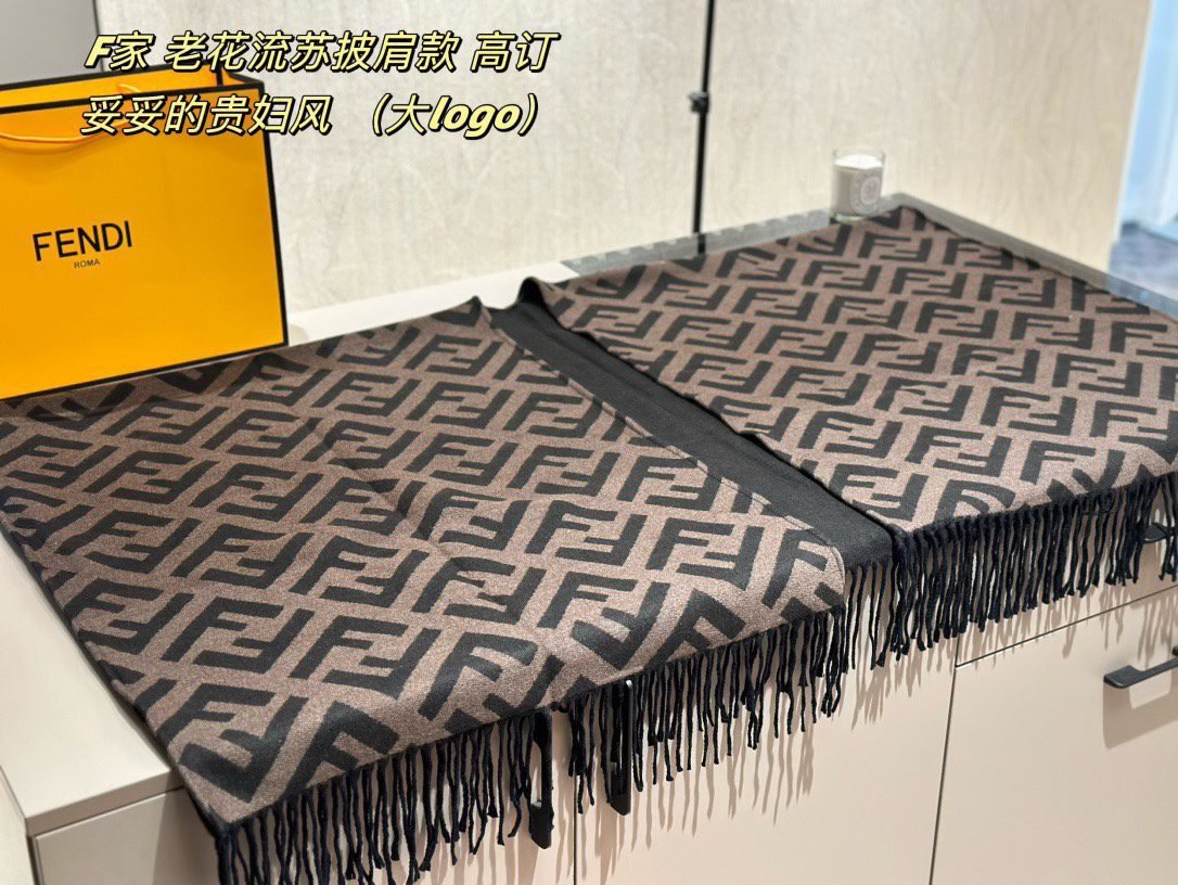 Hot selling scarves/shawls in stock ‼️ ❤️ Comes with a sealed ribbon gift box ???????? Fendi Old Flower Shawl