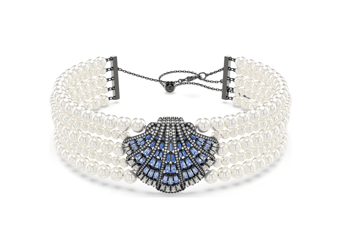 Home JEWELRY SWAROVSKI Swarovski necklace Idyllia Collection Crystal pearl, shell, blue, black chrome-Colección Idyllia Perla de cristal, concha, azul, cromo negro