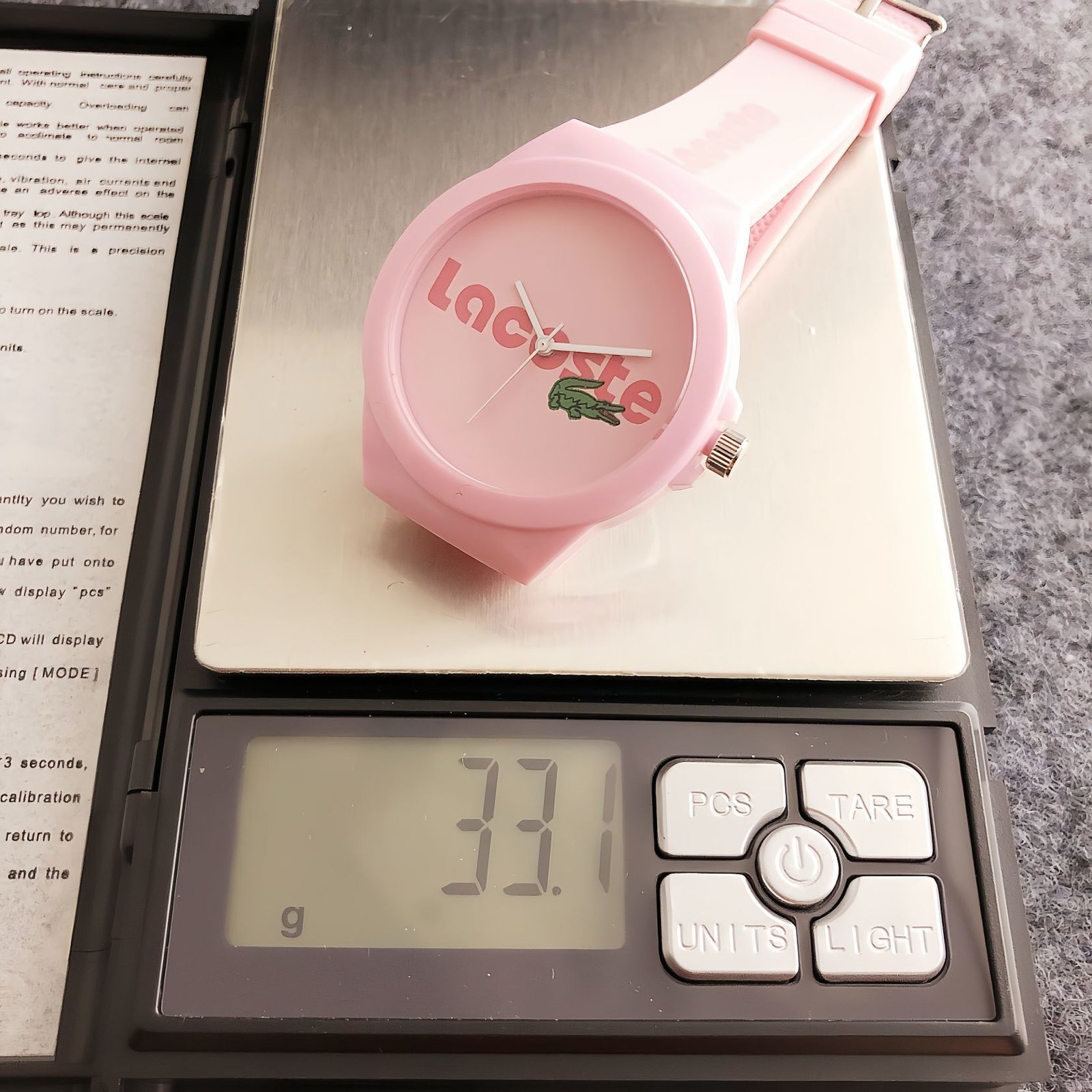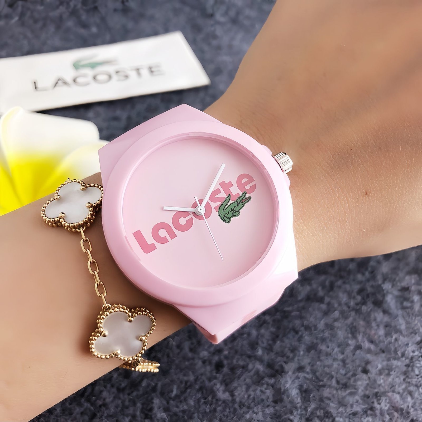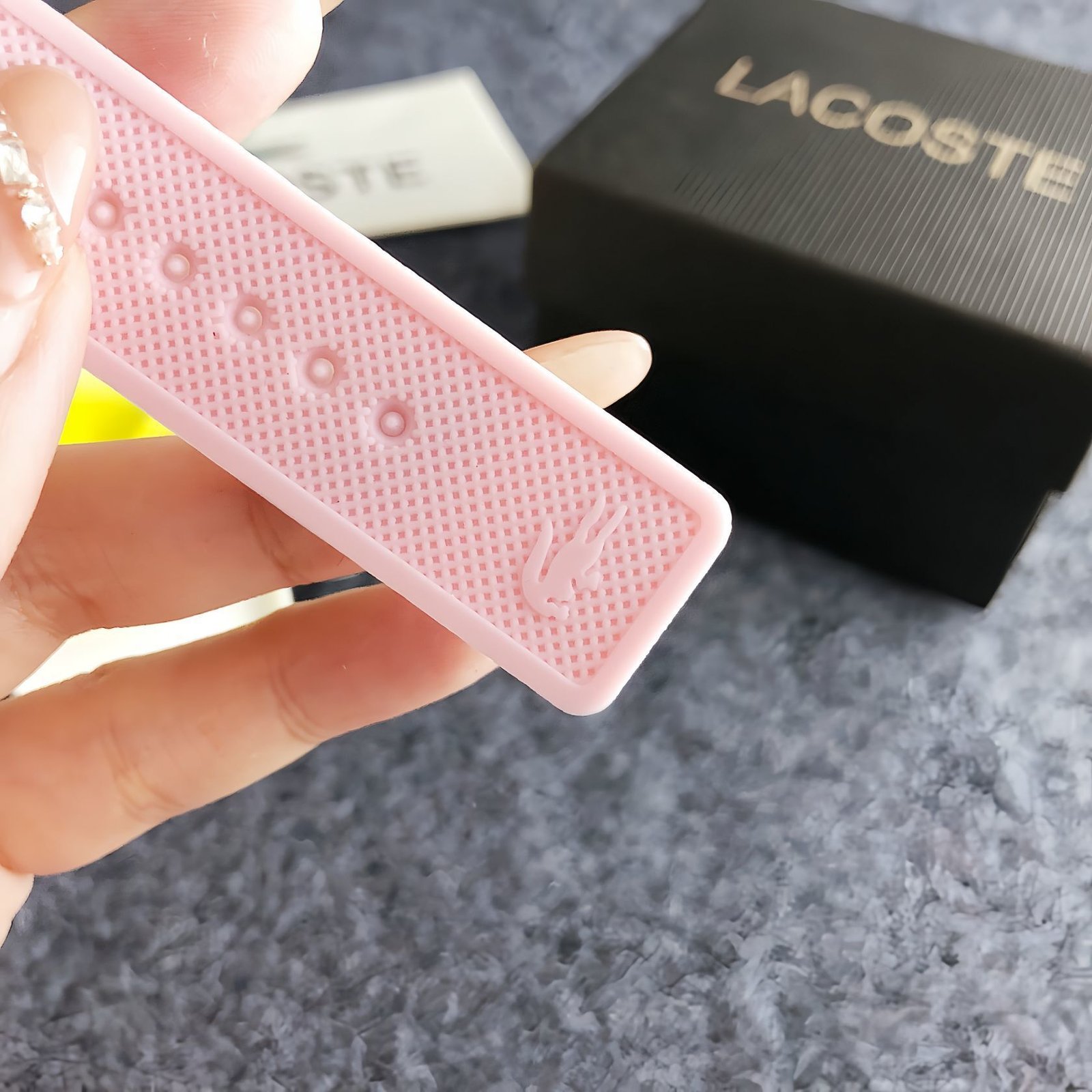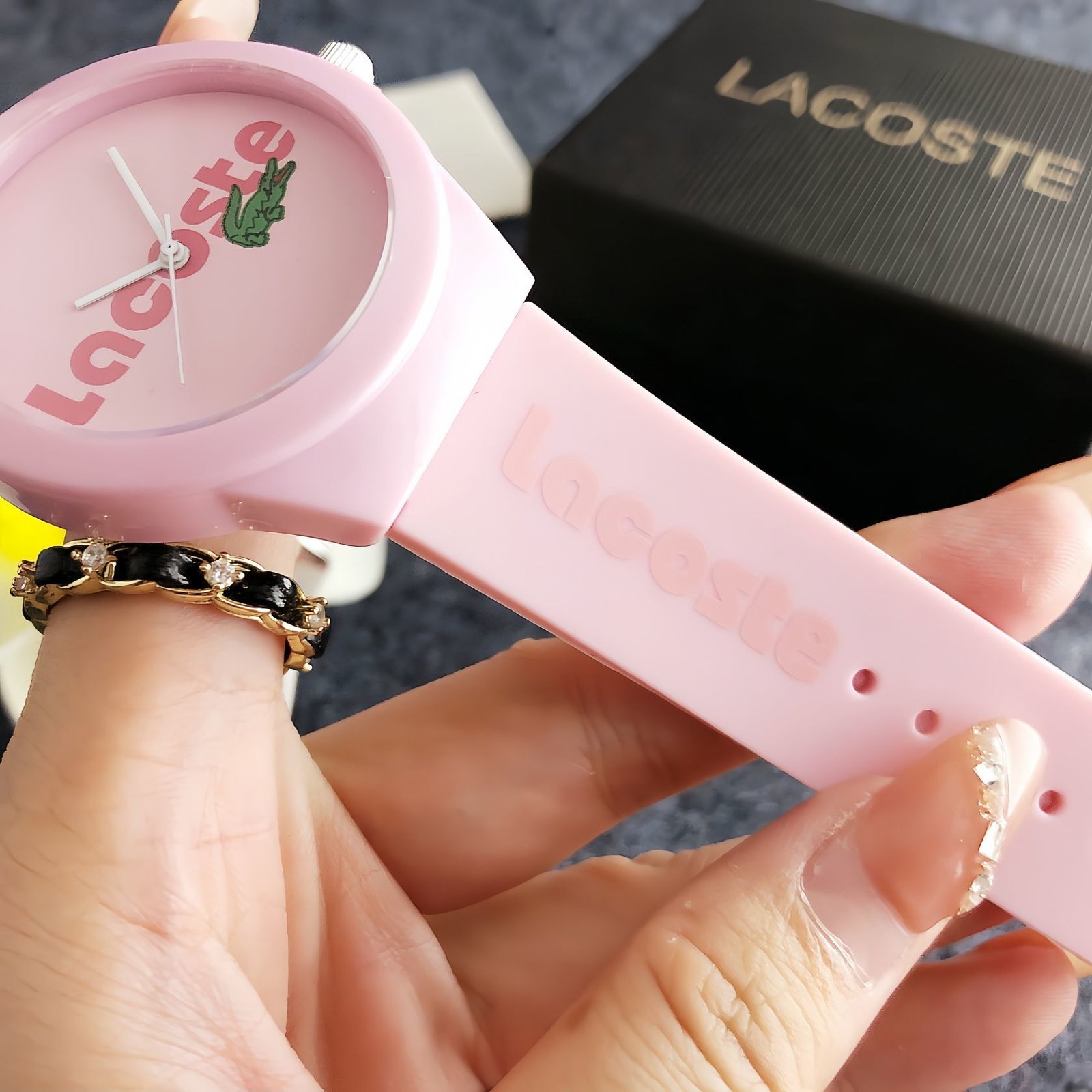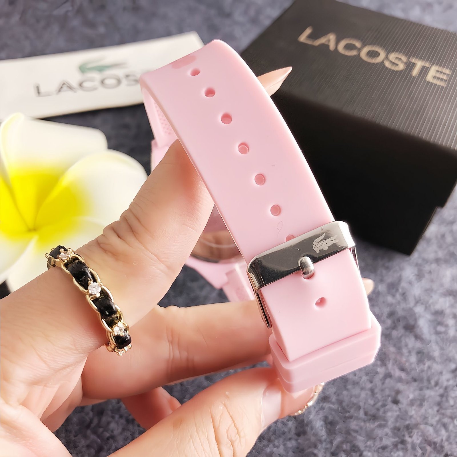 Lacoste 2302-4 series watches embody vibrant casual style, featuring the brand’s iconic crocodile motif on round dials, colorful silicone straps in shades like white, pink, green, blue, and black, and bold branding. With Lacoste’s legacy of sporty-chic design and practicality, these timepieces exude laid-back sophistication. Perfect for those who appreciate a blend of everyday versatility and playful color options, they make a stylish statement suitable for casual outings and active lifestyles.