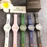 Lacoste 2302-4 series watches embody vibrant casual style, featuring the brand’s iconic crocodile motif on round dials, colorful silicone straps in shades like white, pink, green, blue, and black, and bold branding. With Lacoste’s legacy of sporty-chic design and practicality, these timepieces exude laid-back sophistication. Perfect for those who appreciate a blend of everyday versatility and playful color options, they make a stylish statement suitable for casual outings and active lifestyles.