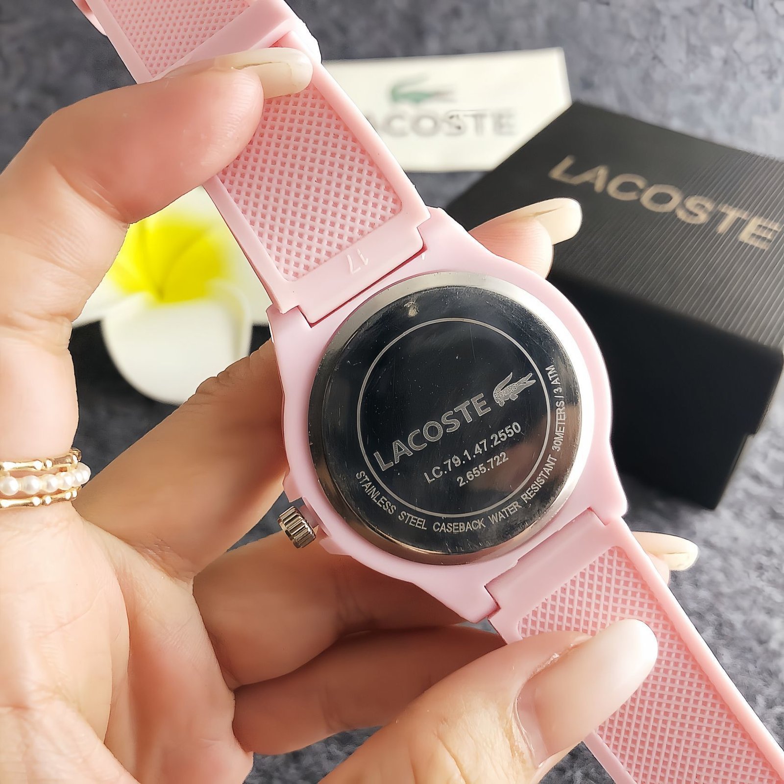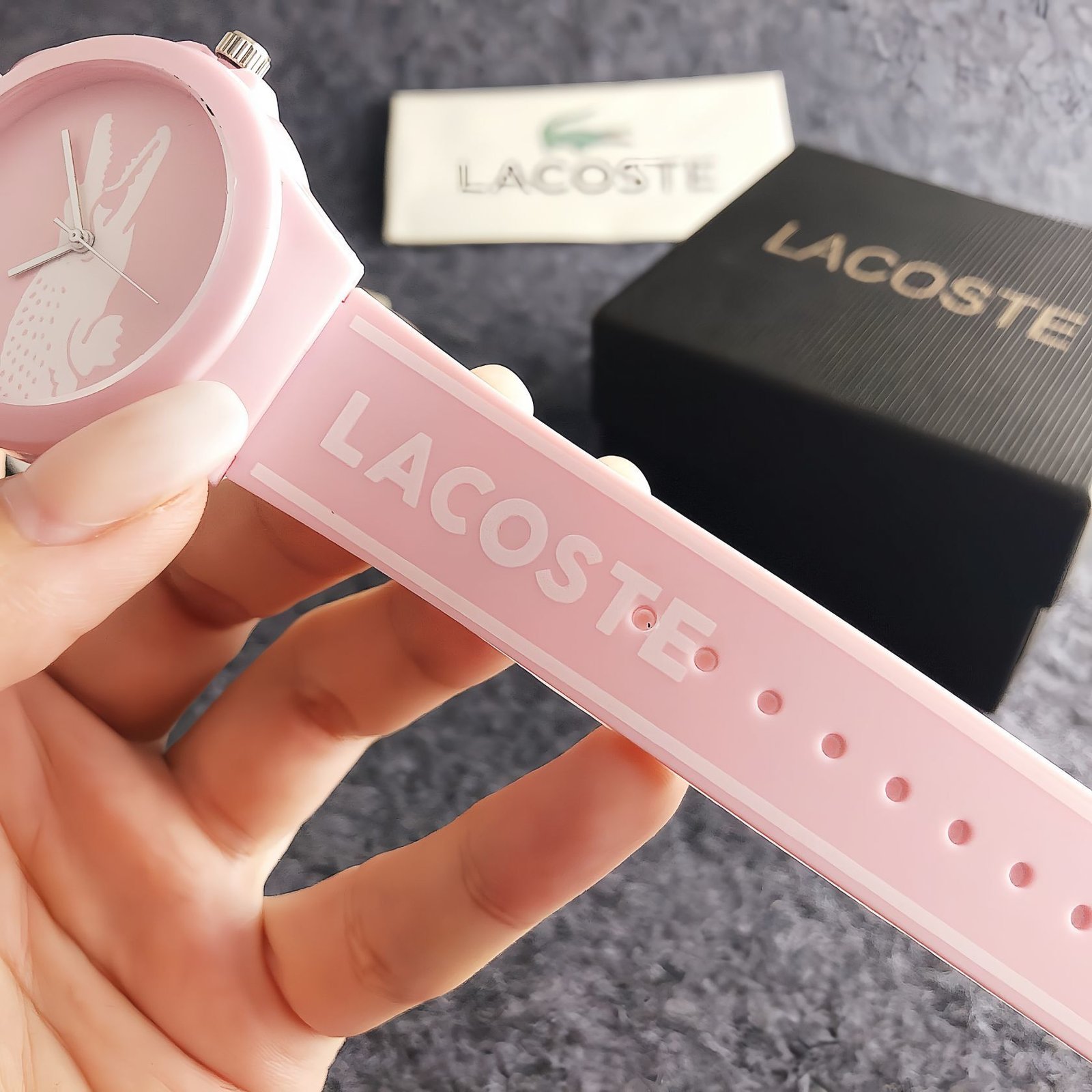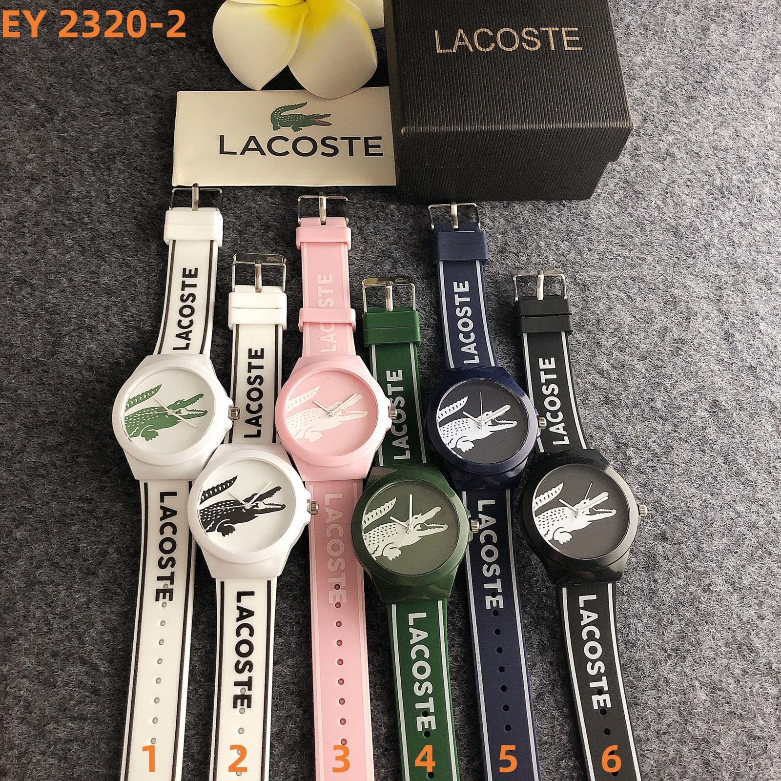 Lacoste LA 2320-2 series watches blend vibrant branding with casual flair. Featuring silicone straps emblazoned with “LACOSTE” and dials showcasing the iconic crocodile motif, they come in lively hues like white, pink, green, navy, and black. Embodying Lacoste’s signature fusion of sporty energy and bold design, these timepieces add a touch of dynamic charm to any look, perfect for those who love eye-catching, brand-centric accessories that stand out in daily wear or casual outings.