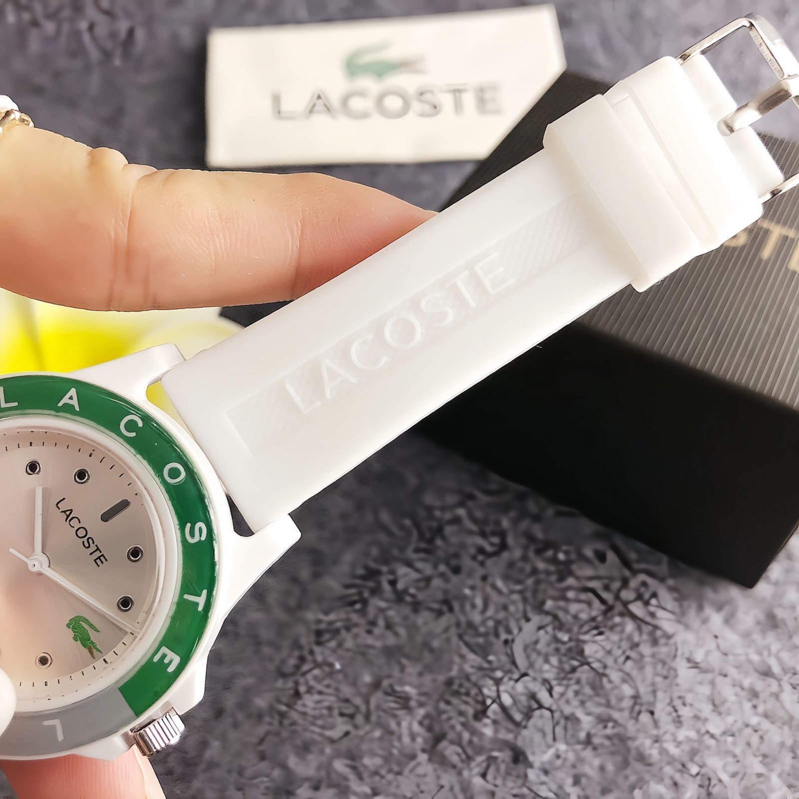 Lacoste LA A33 series watches blend energetic style with casual functionality. Featuring colorful silicone straps and the iconic Lacoste crocodile motif on the dials, they come in lively hues like white, pink, light blue, grey, navy, red, green, and black. Embodying Lacoste’s signature fusion of sporty spirit and modern fashion, these timepieces add a touch of vibrant charm to any look, perfect for those who love bold, versatile accessories that stand out in daily wear, outdoor activities, or casual outings.