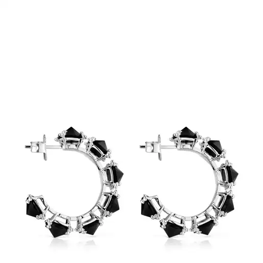 Do you know the new Color Pills Onix collection? Discover these large sterling silver and onyx hoop earrings with black gemstones that convey elegance.