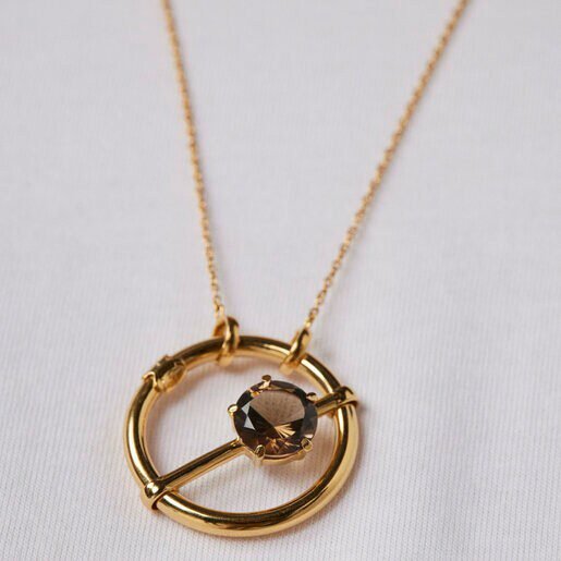 TOUS Hold pendant in silver vermeil with 10 mm faceted round smoky quartz. Size: 28 mm.