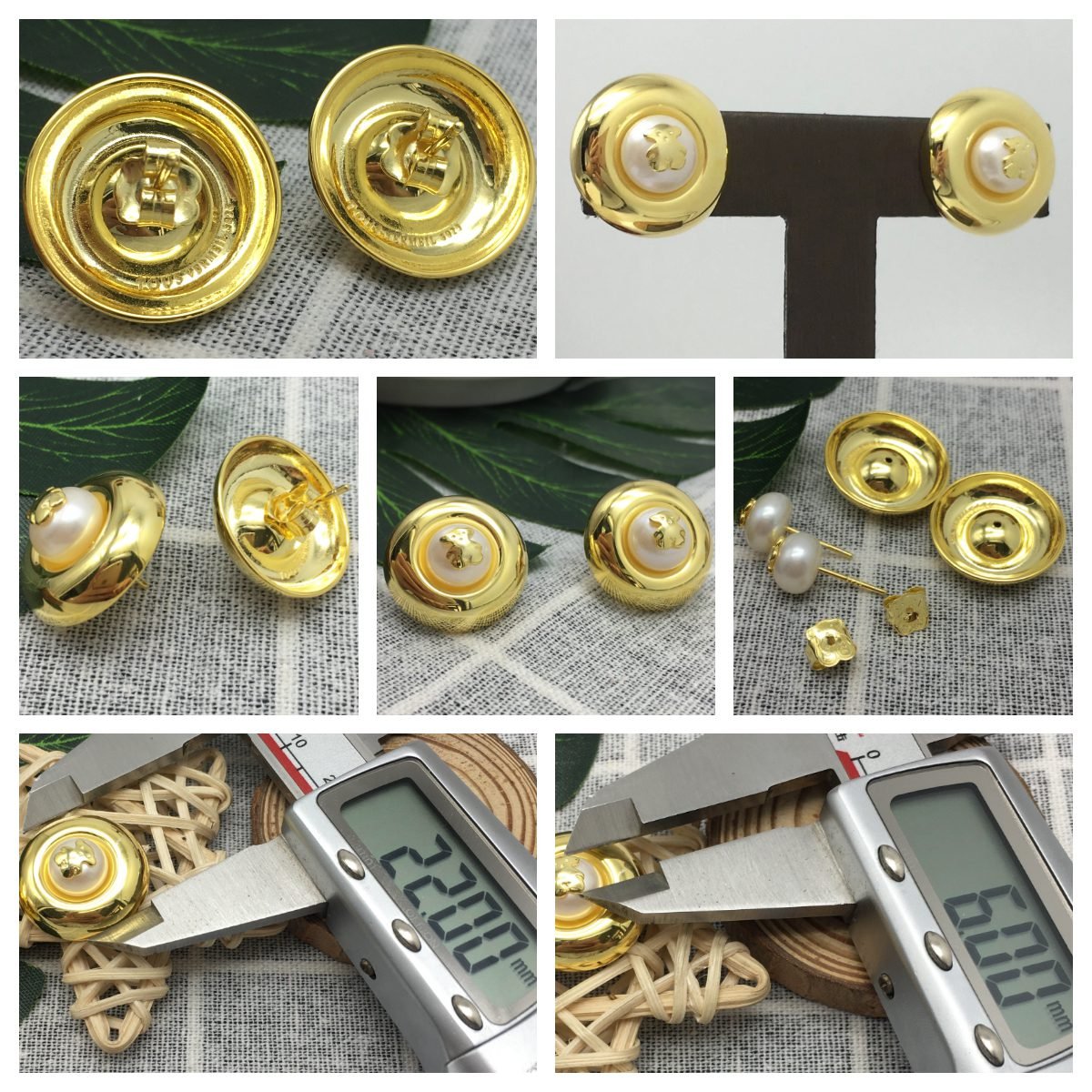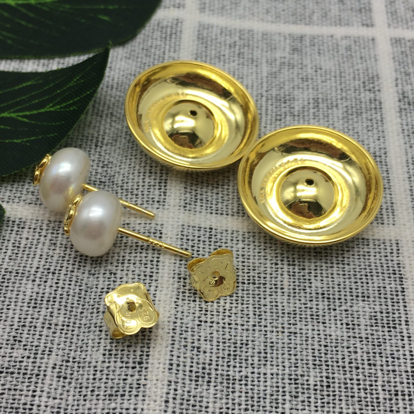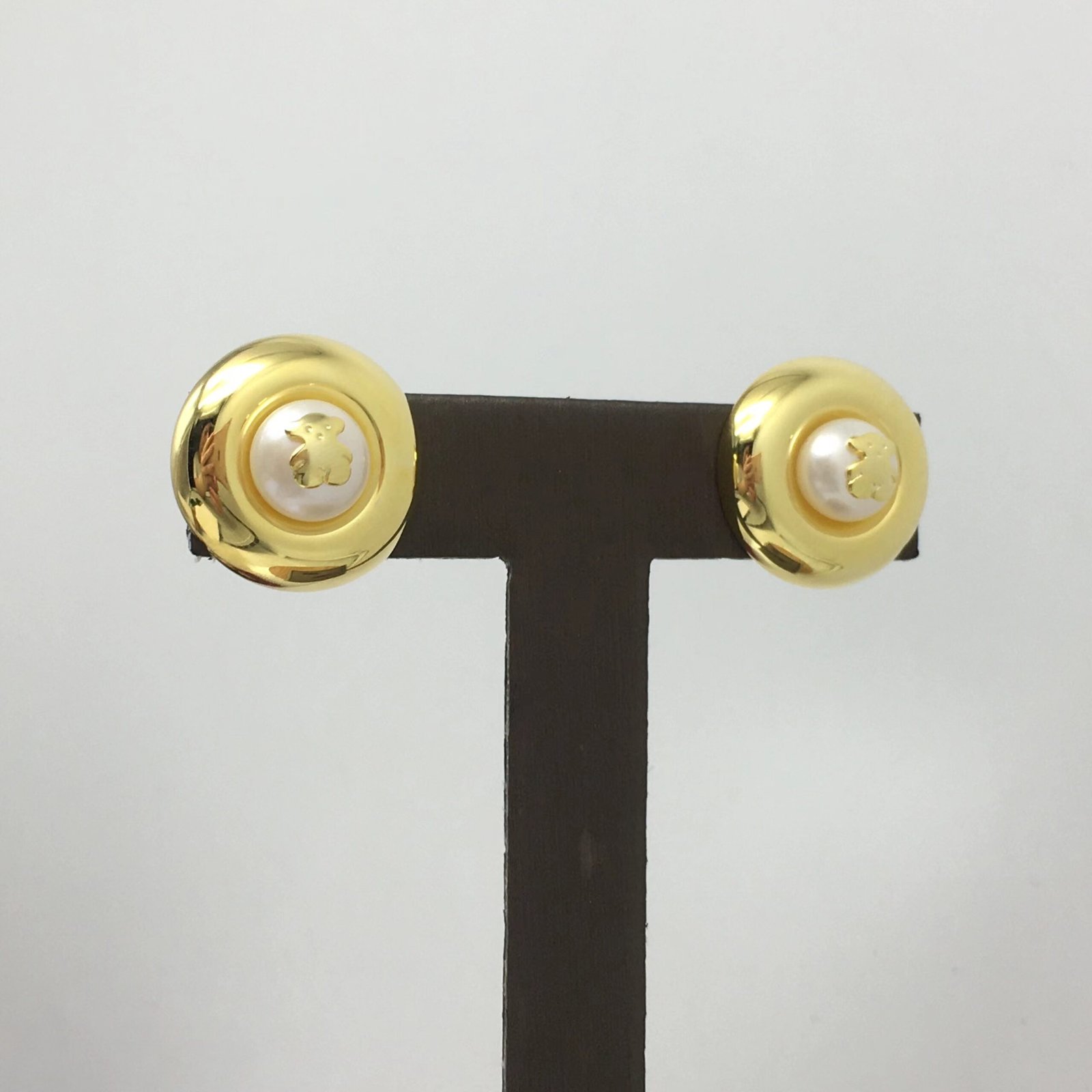 TOUS Basics disc earrings in silver vermeil with half-round 9.5-9.7 mm cultured freshwater pearl with 6 mm bear. Earrings size: 2.2 cm.