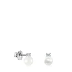 TOUS Les Classiques Earrings in 18 kt white gold with diamond and 0.6 cm pearl. Total weight: 0.04 ct. Push back.