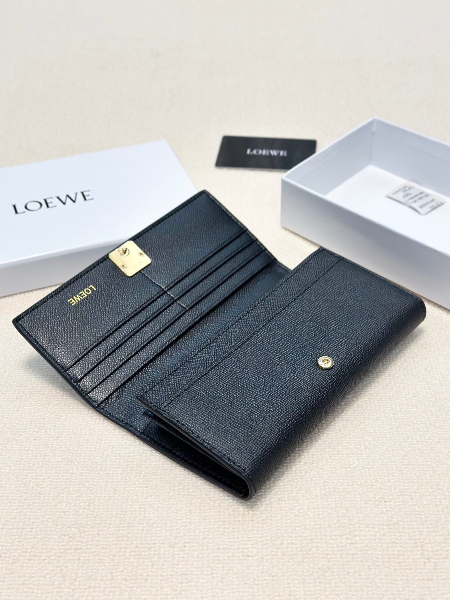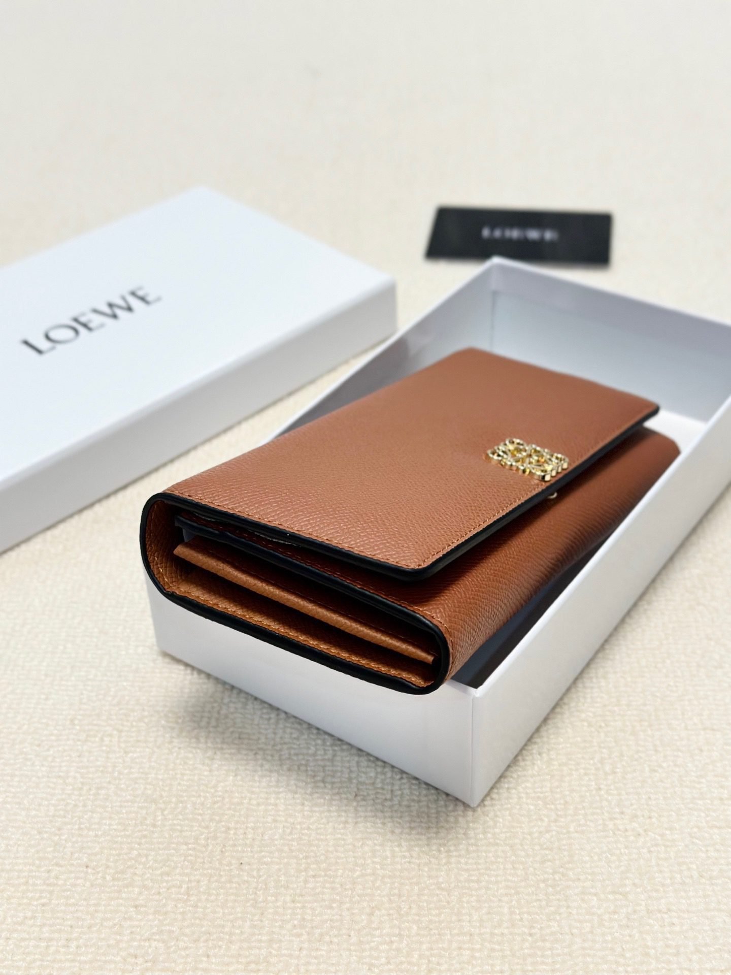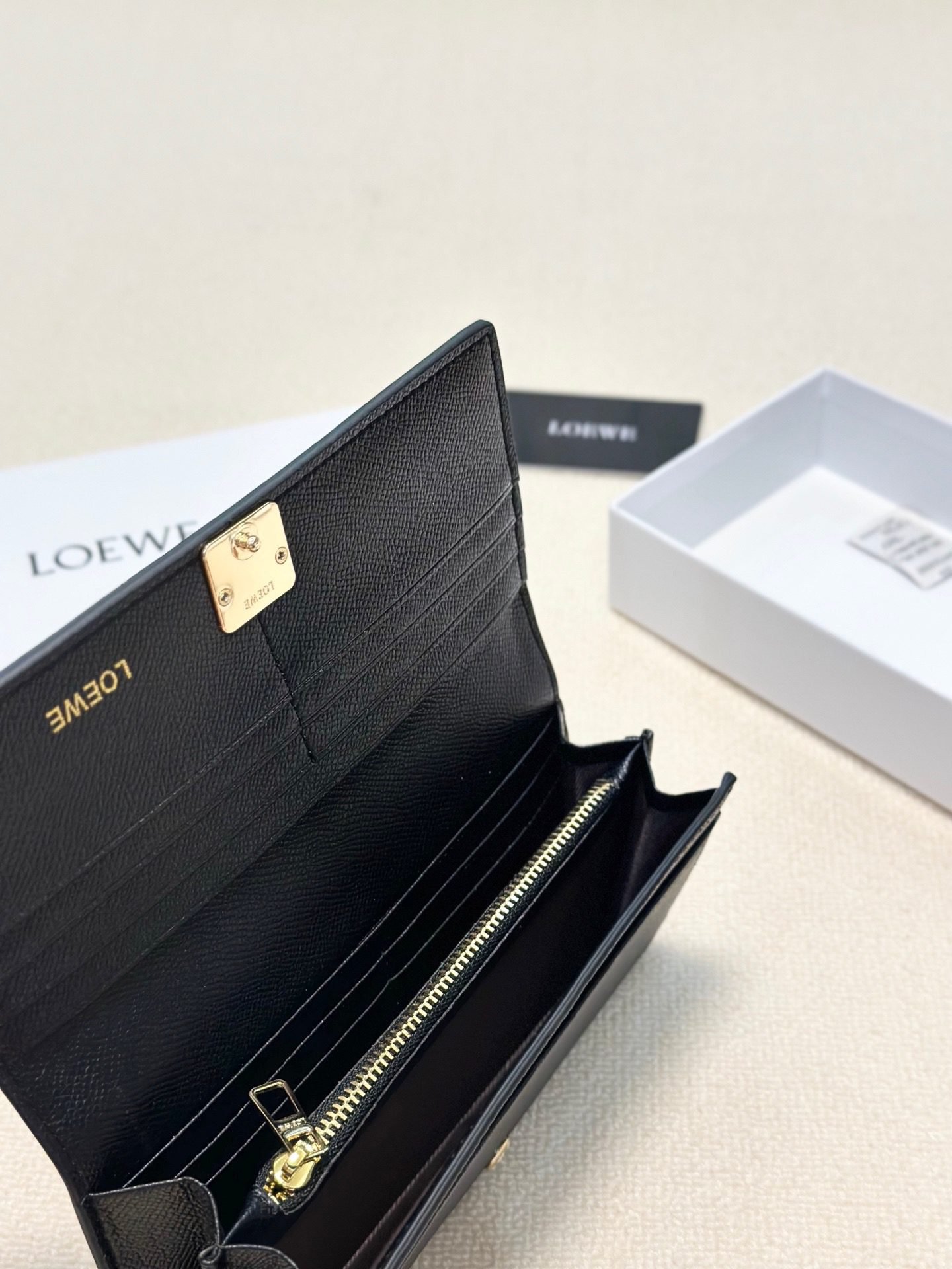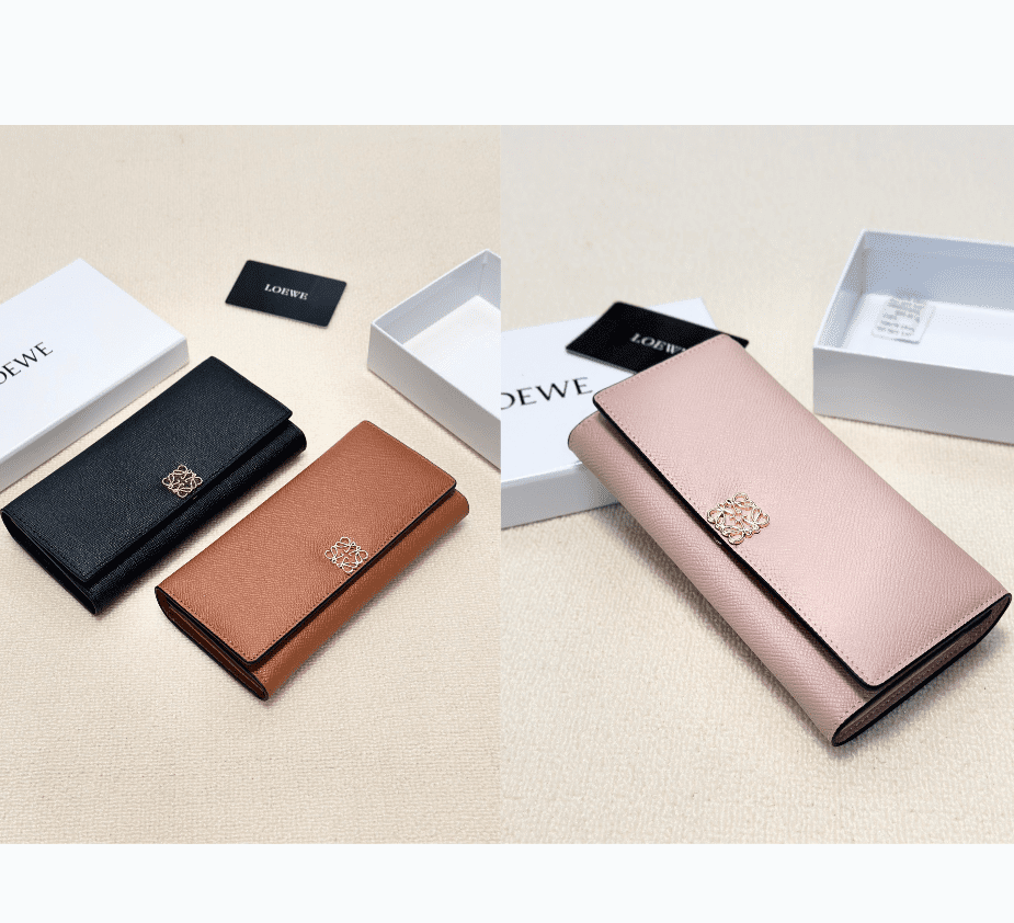 ✨ A signature long wallet from Spanish luxury brand LOEWE, crafted from durable, fine grained leather and accented with the brand’s classic metal Anagram logo for an understated luxury finish.