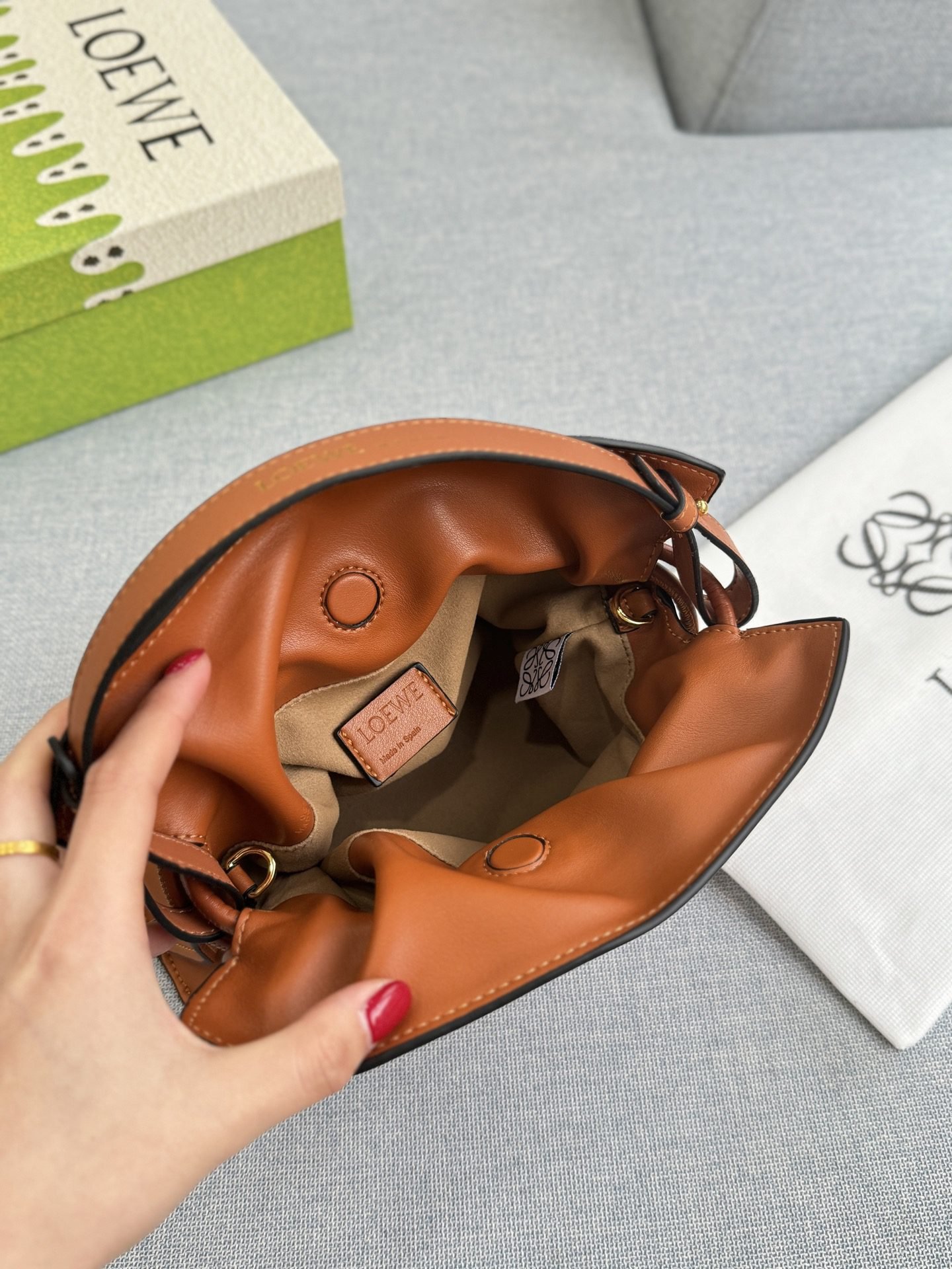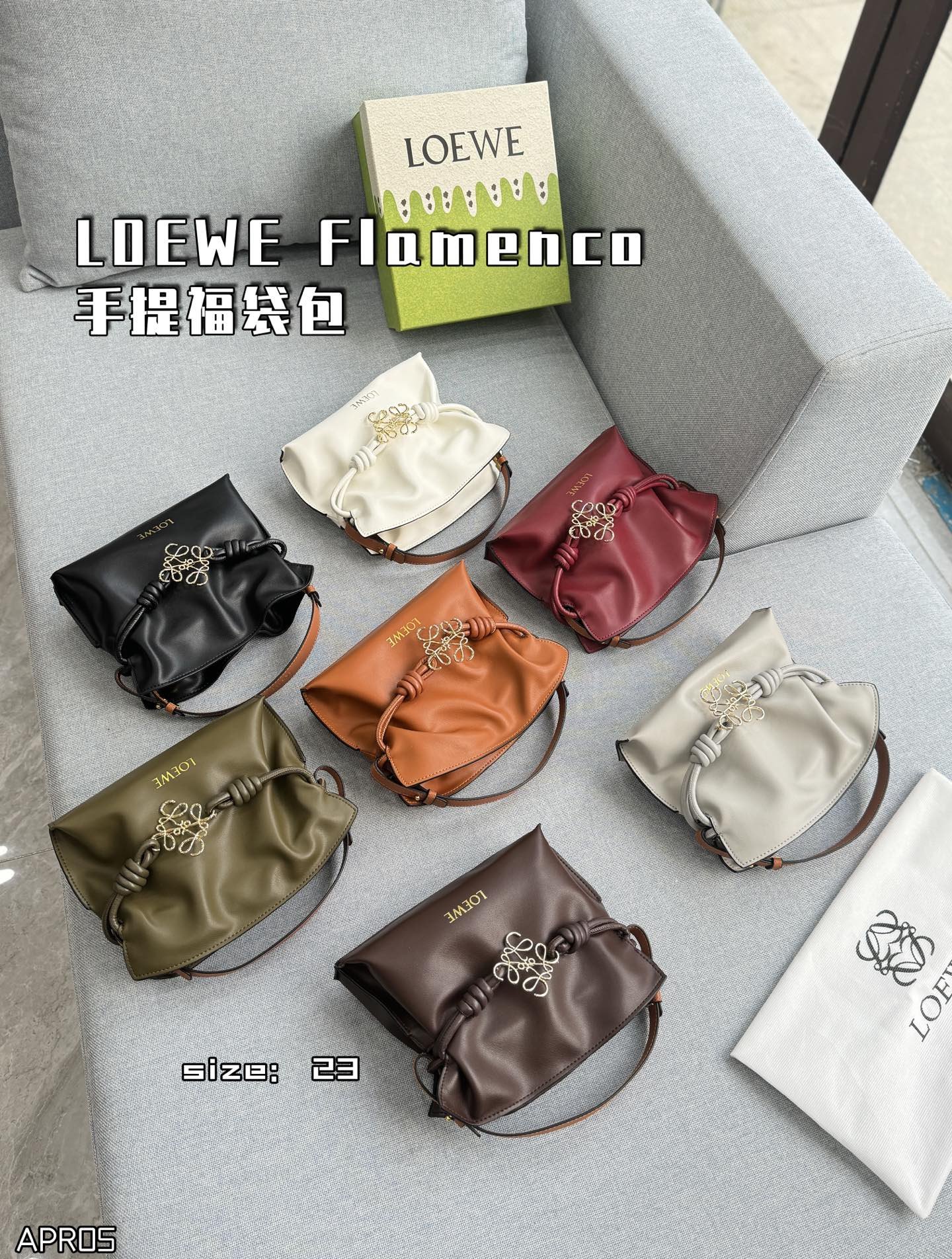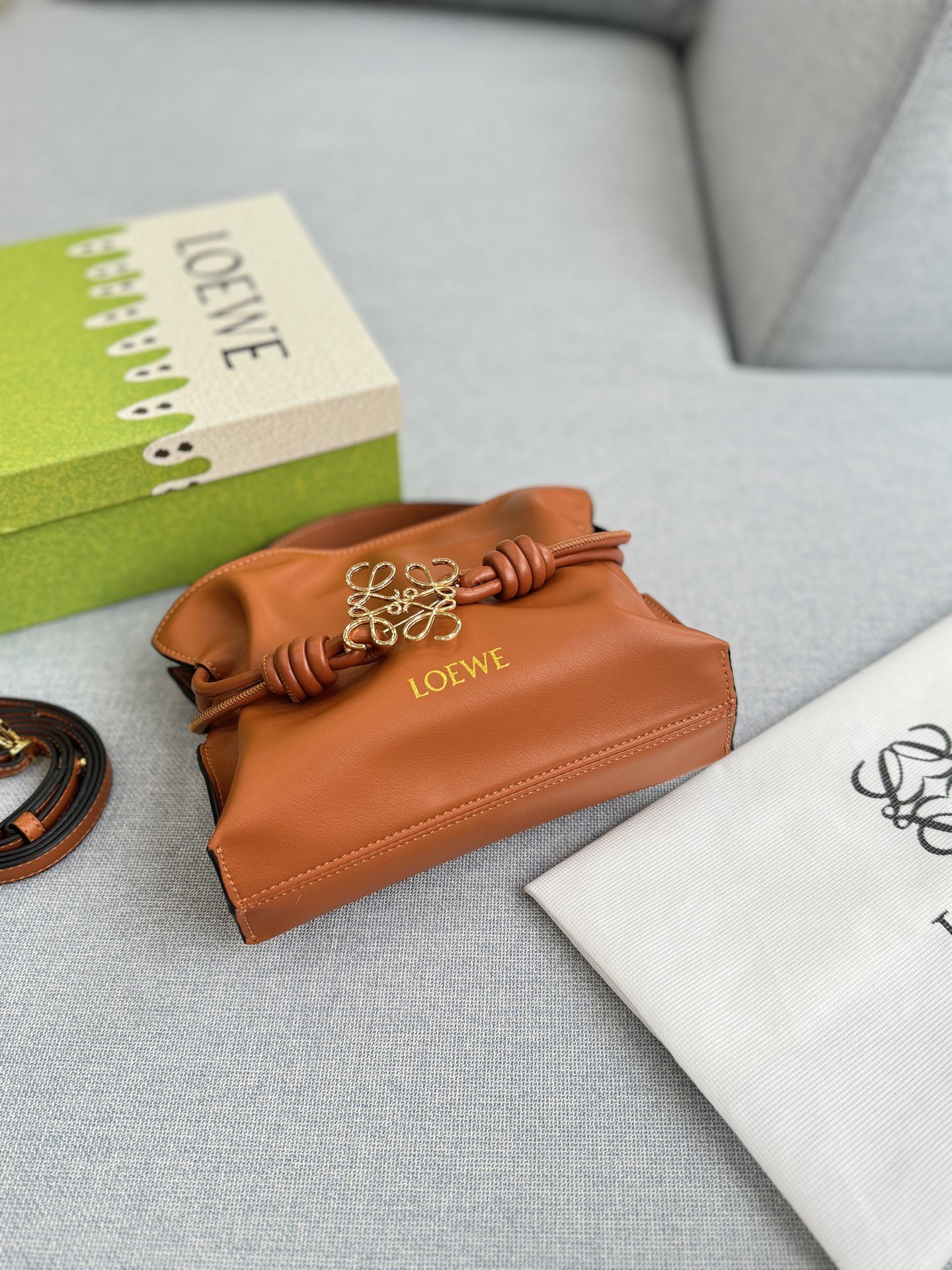 ✨ LOEWE’s iconic Flamenco pouch bag features a relaxed, ruched silhouette crafted from buttery-soft leather, with the signature Anagram metal clasp adorning the drawstring, balancing a casual vibe with luxury sophistication.