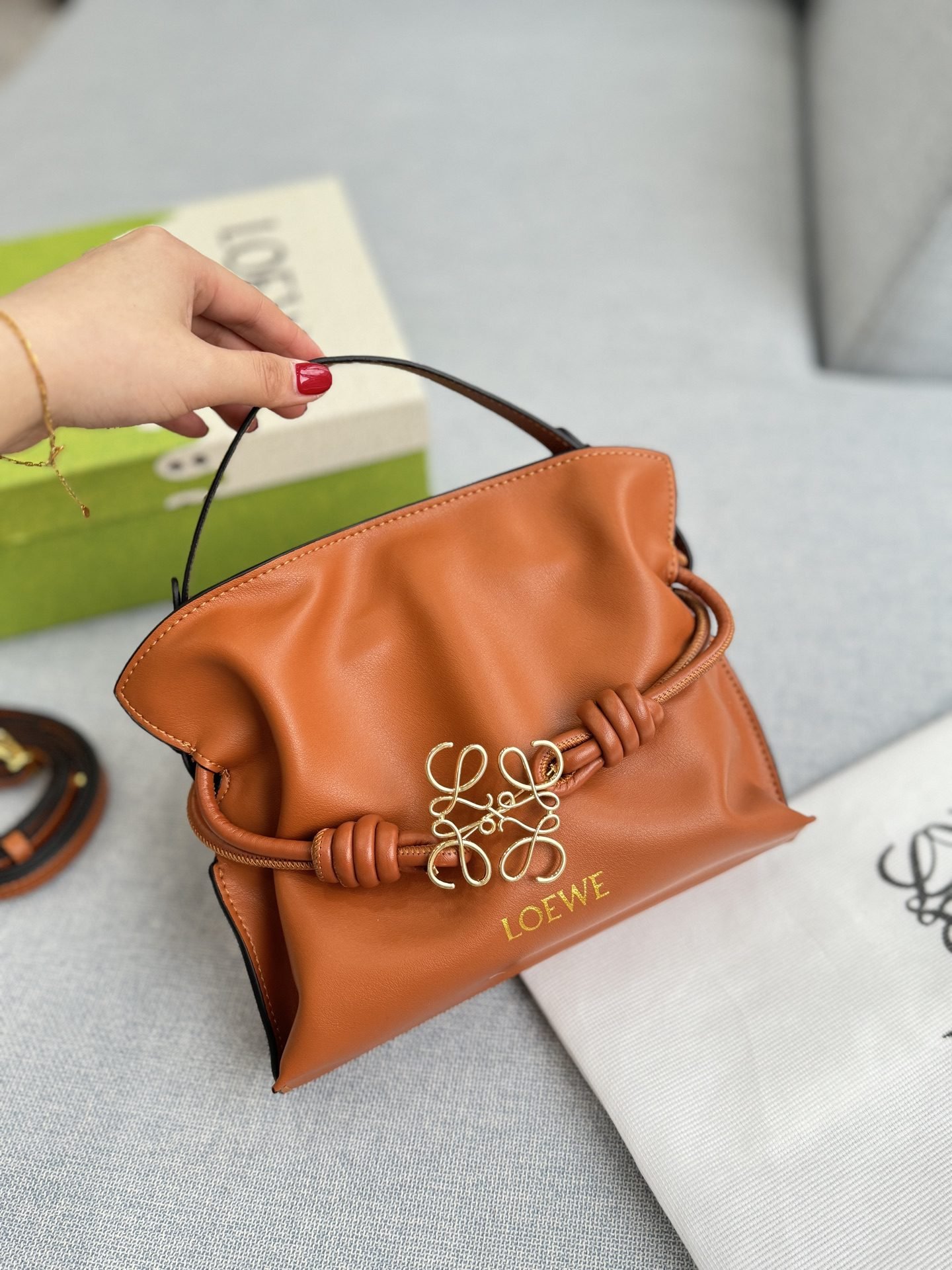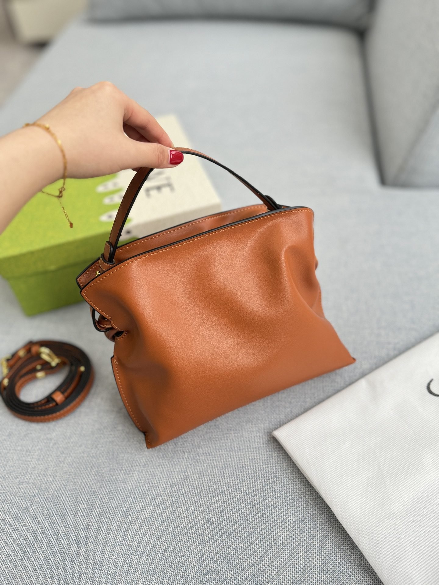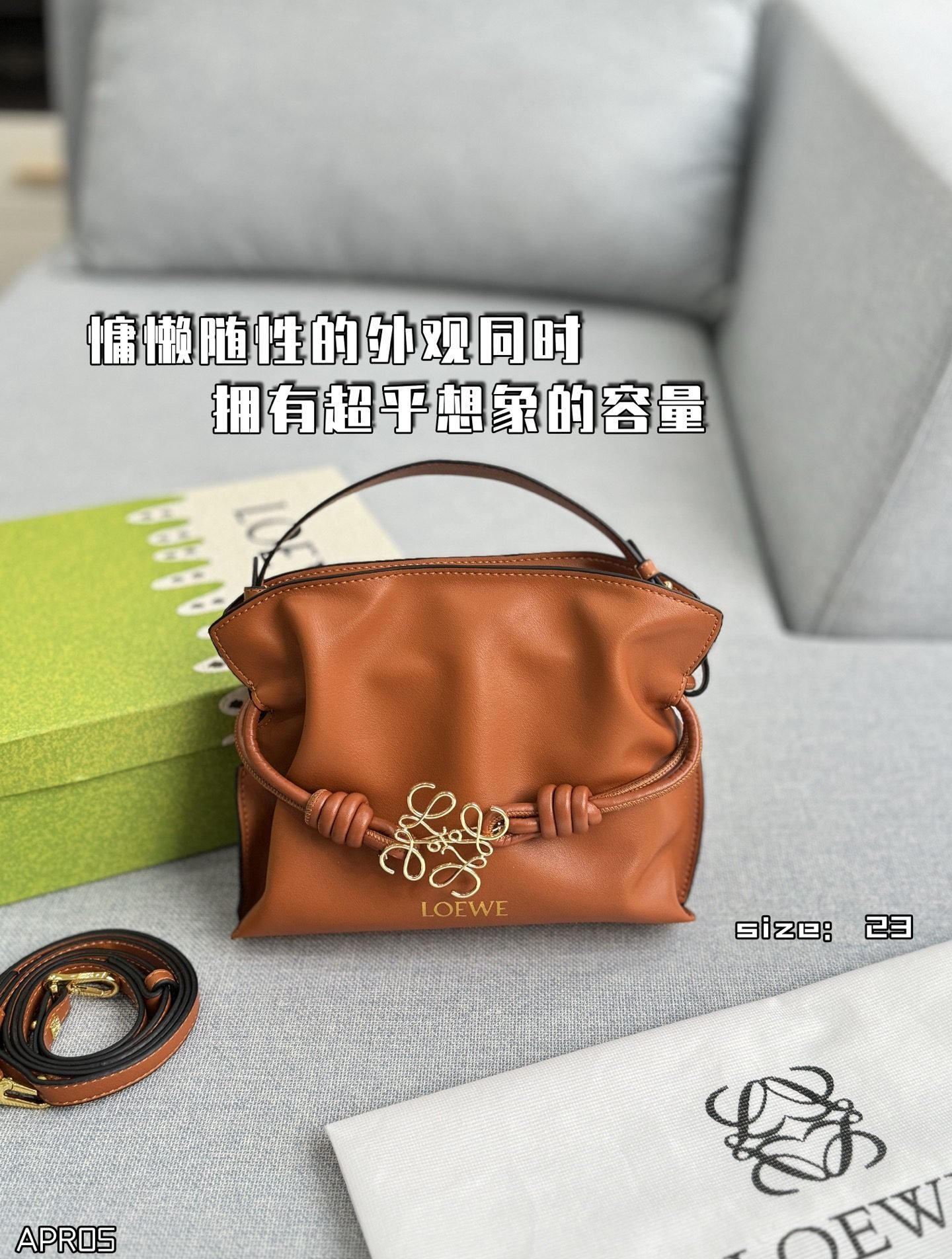 ✨ LOEWE’s iconic Flamenco pouch bag features a relaxed, ruched silhouette crafted from buttery-soft leather, with the signature Anagram metal clasp adorning the drawstring, balancing a casual vibe with luxury sophistication.