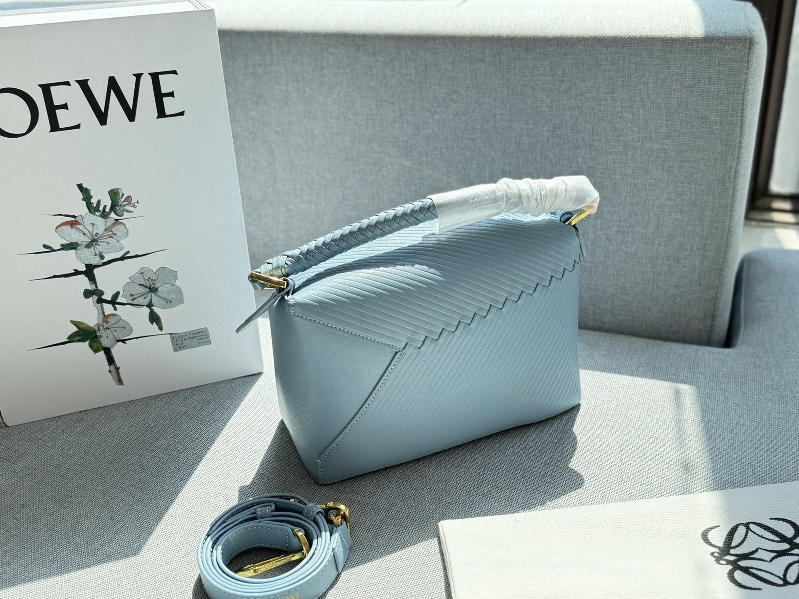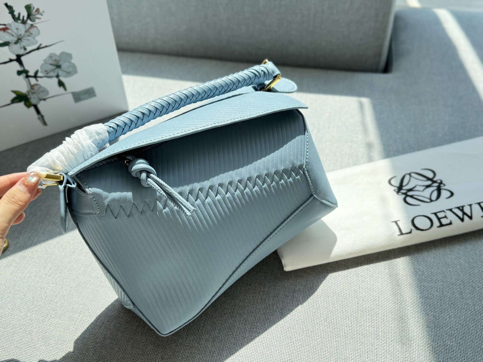 ✨ LOEWE’s iconic Puzzle series woven geometric bag features a unique diagonal woven texture crafted from soft leather, retaining the brand’s signature geometric flap design with clean lines and a three-dimensional silhouette. Accented with a hidden magnetic clasp, it balances aesthetic appeal with practicality.