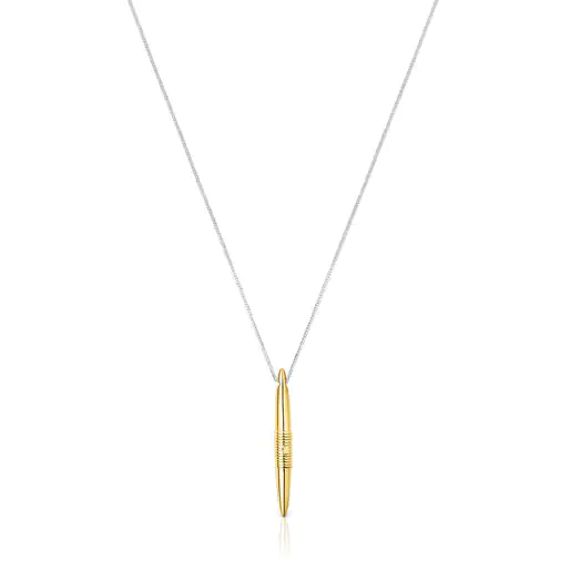 Attitude and loads of personality in this long silver and silver vermeil necklace from the Lure collection. Minimalist designs that are symmetrical and unisex recreating elements of the natural world and fishing.