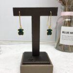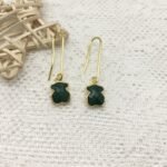 Our iconic bear takes center stage to showcase the jewels in the Icon Color collection. Make the long silver vermeil and malachite earrings your own and always have them with you.