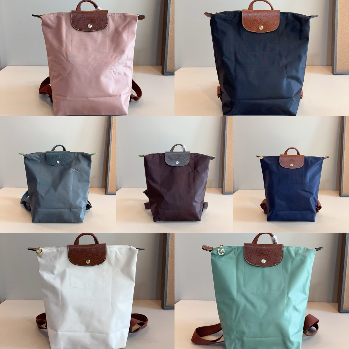 Available in seven colors: cherry blossom pink, navy blue, mist gray, coffee brown, deep sea blue, off-white, and mint green. The versatile hues complement a wide range of styles, making it a stylish and eco-friendly backpack choice.