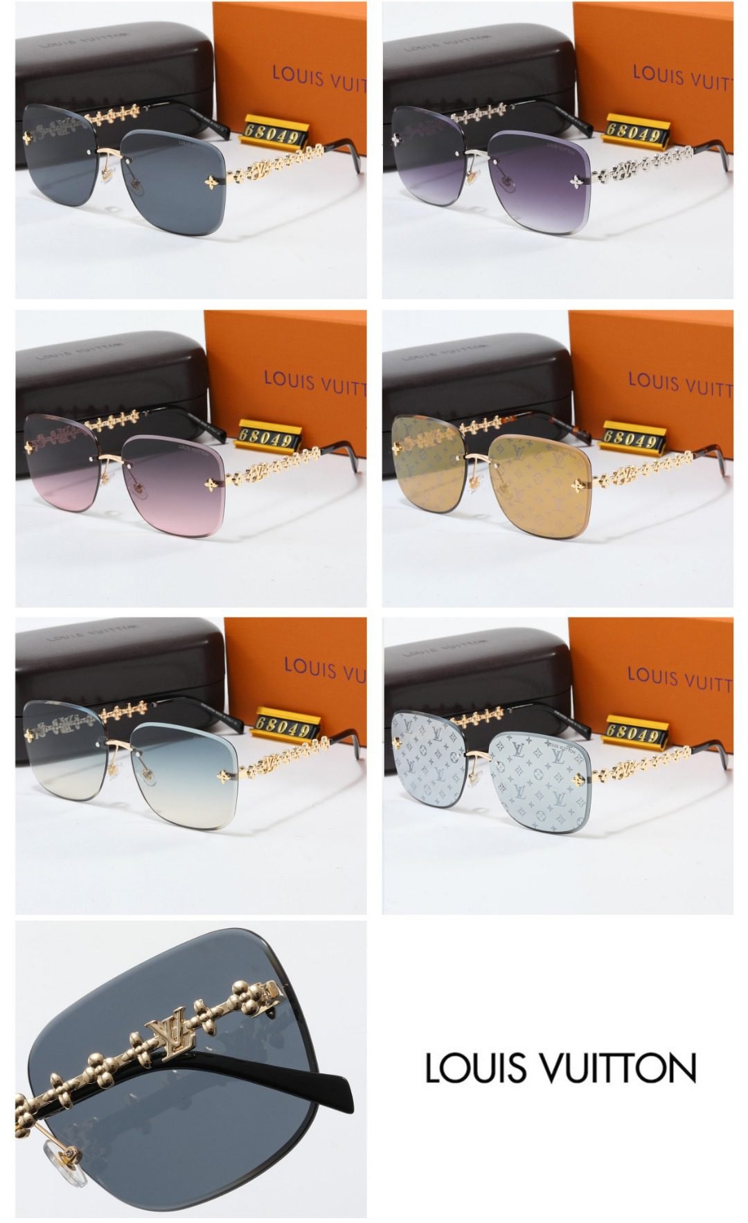 Elevate your eyewear game with Louis Vuitton 68049 Sunglasses. Boasting a stunning array of lens colors and frames adorned with the iconic LV monogram and intricate detailing, these sunglasses seamlessly blend high fashion with functionality. The exquisite craftsmanship and signature Louis Vuitton design elements make each pair a statement piece. Whether you prefer a bold or subtle look, there’s an option to match your style. Complete with premium packaging, they’re the perfect accessory to add a touch of luxury to any outfit. Step out in Louis Vuitton elegance!